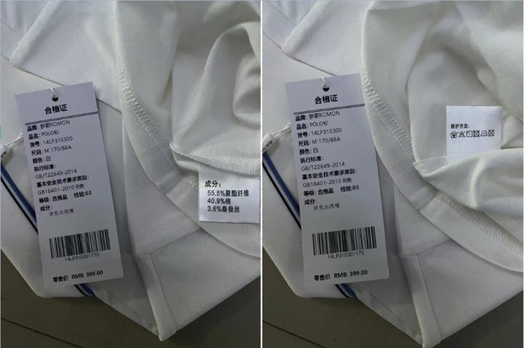 面料:55.5%聚酯纤维 40.9%棉 3.6%桑蚕丝