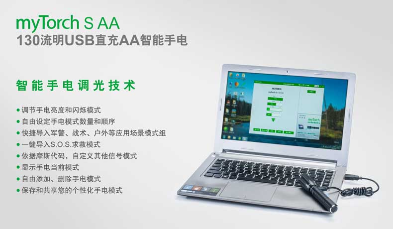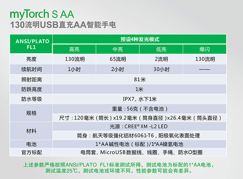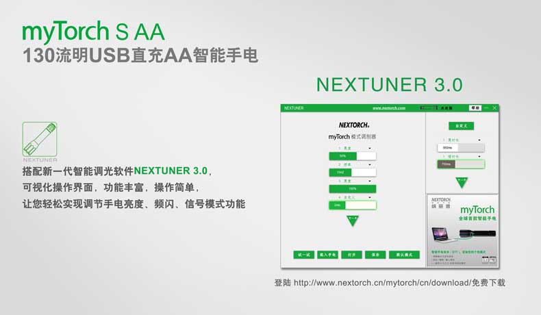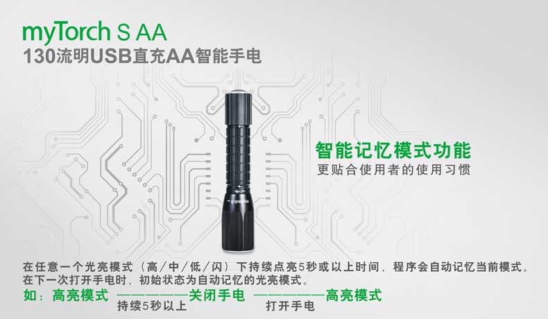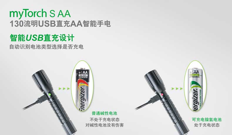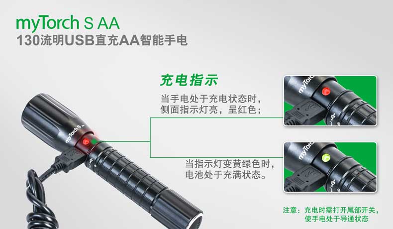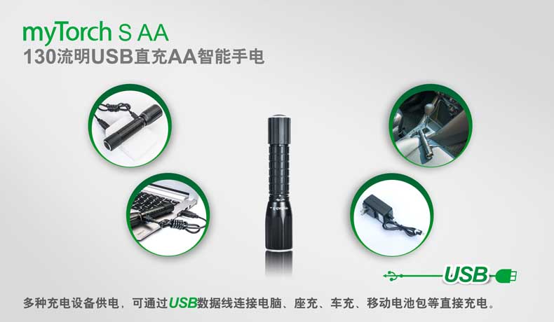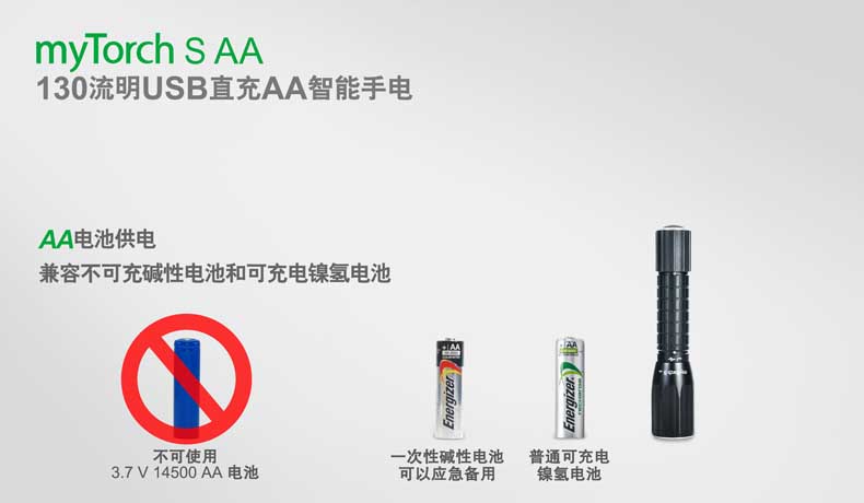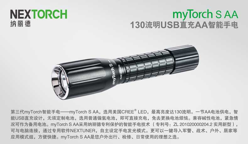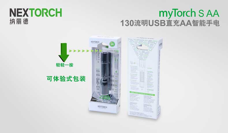 纳丽德(NEXTORCH)myTorch S AA直充便携户外家用手电AA电池