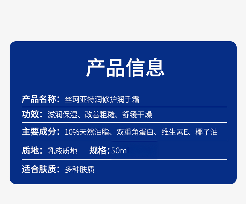 热卖!一抹水润!Silkia 丝珂亚特润修护润手霜 英国品牌原装进口 轻薄不油腻 修护滋养 50ml/支