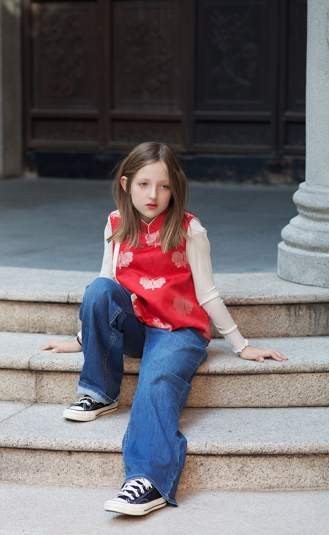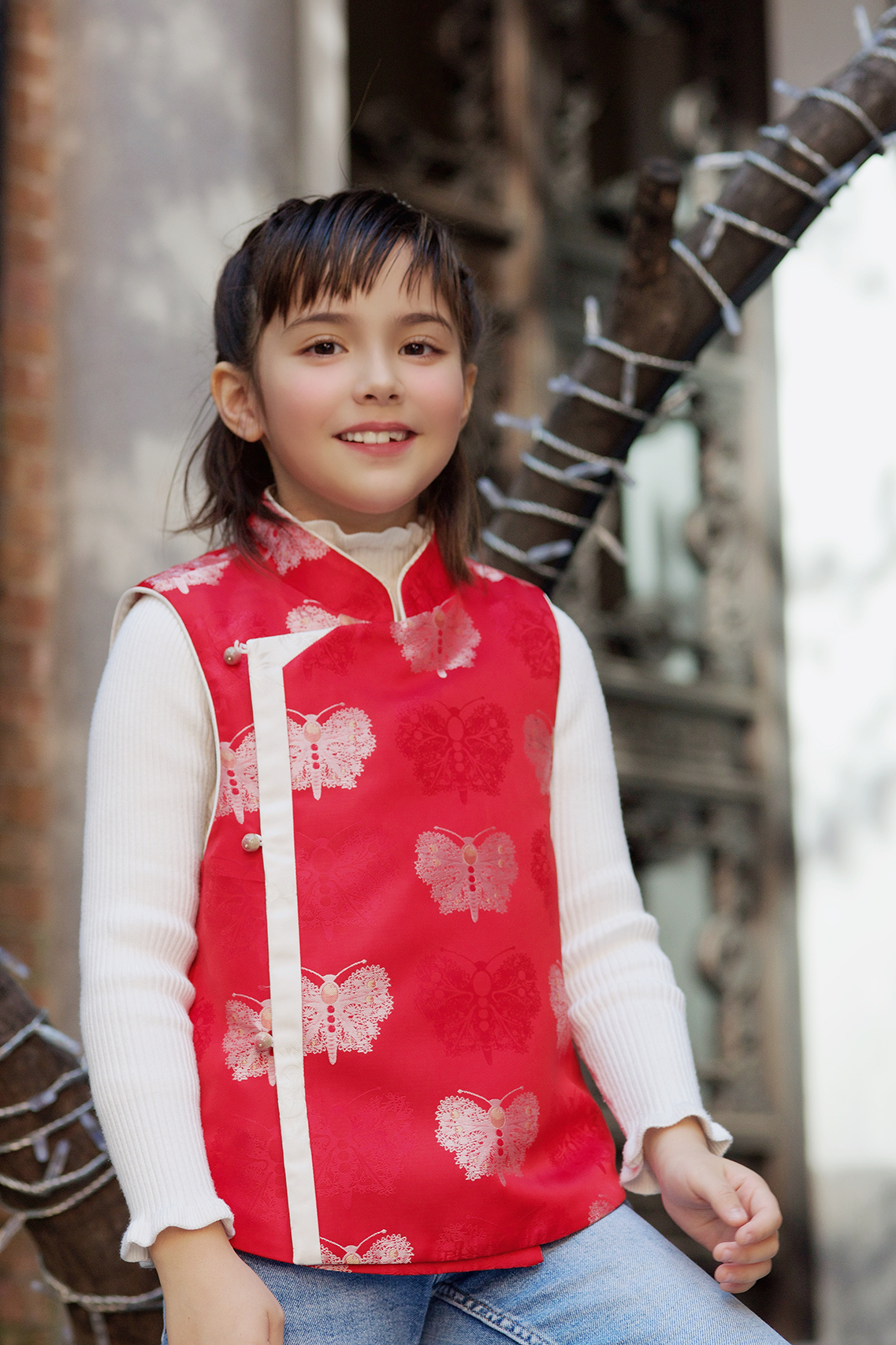 下架|盛唐牡丹|儿童系列|Kids 翩翩起舞斜襟马甲