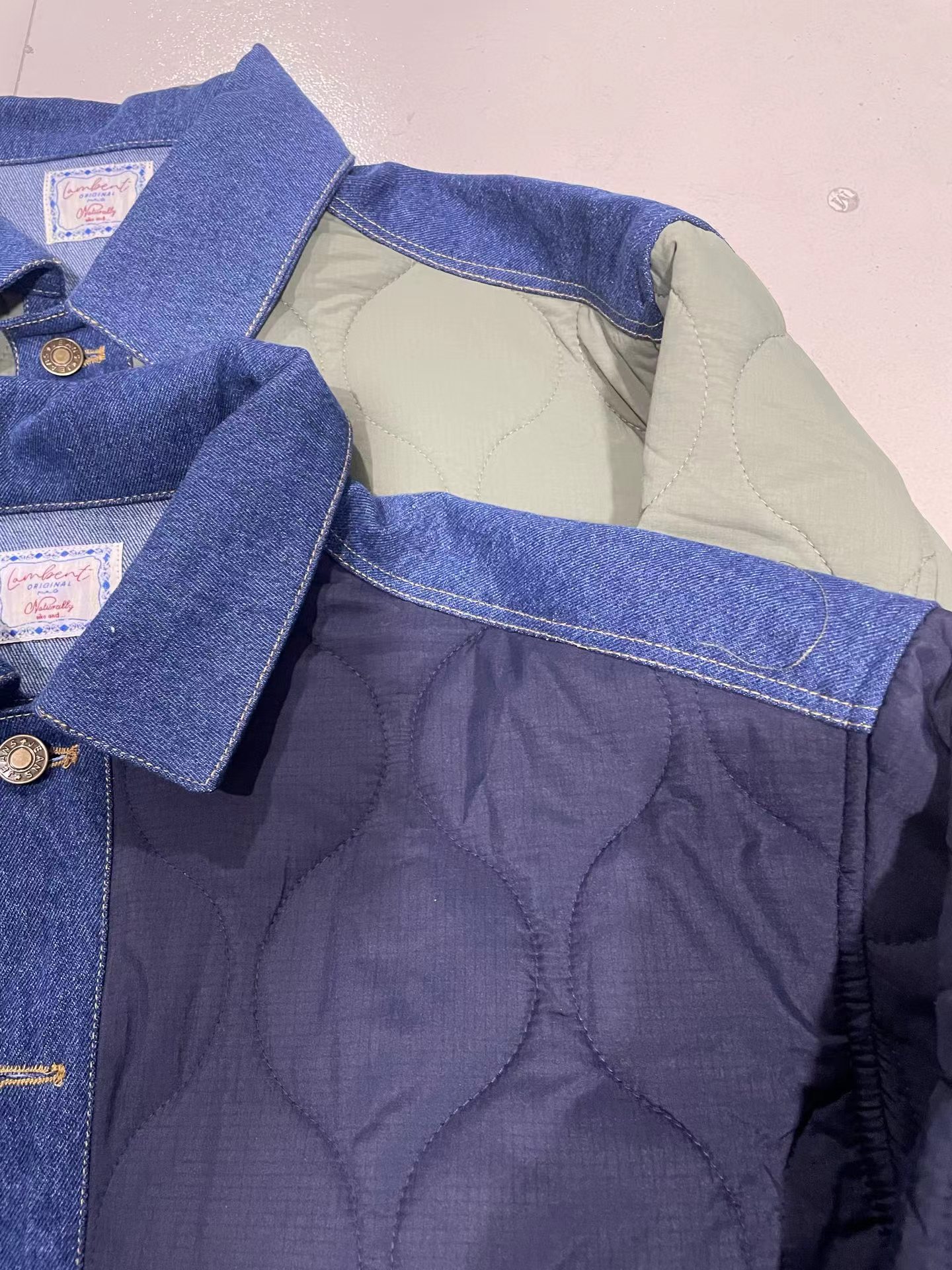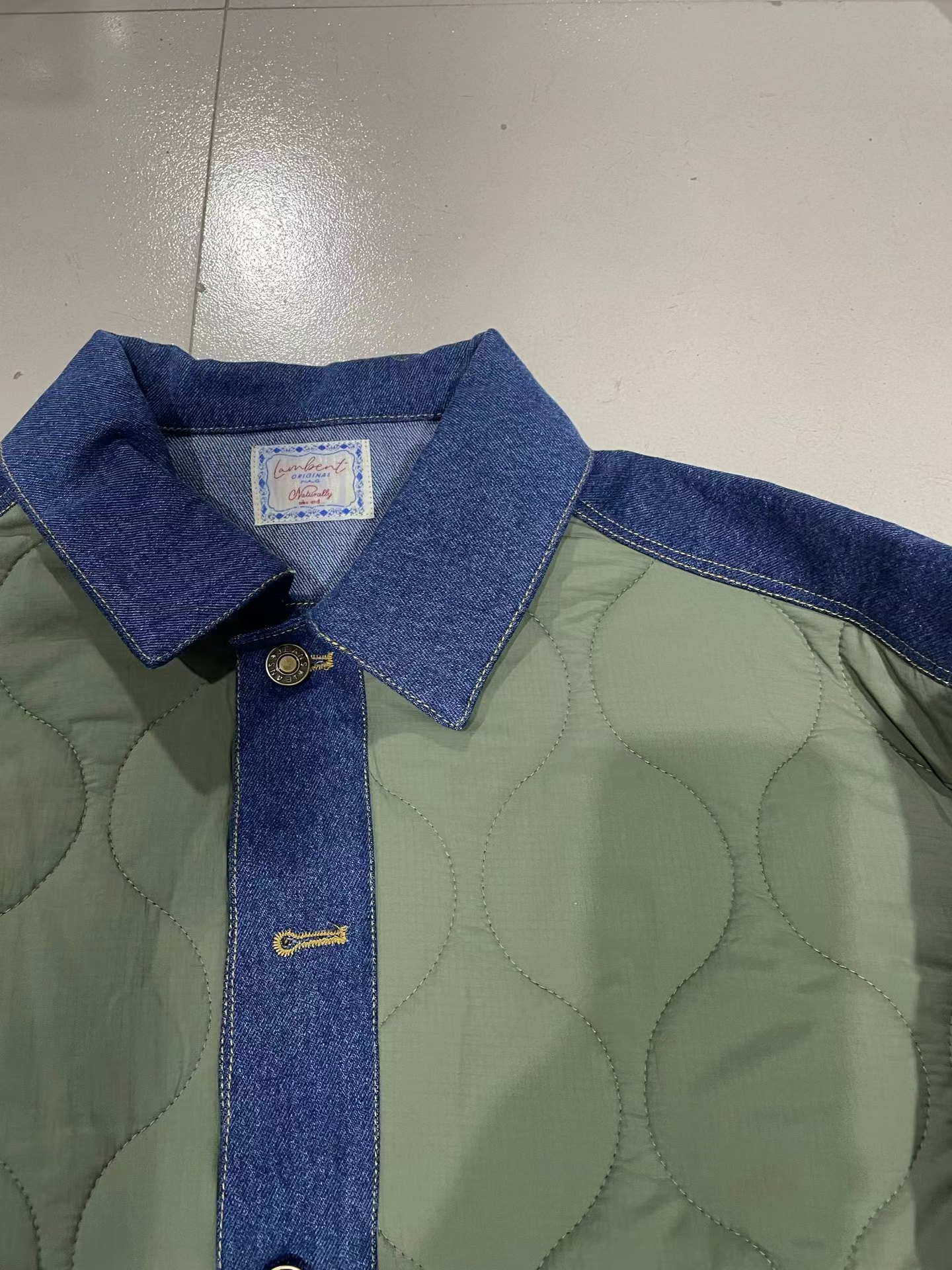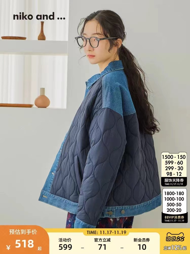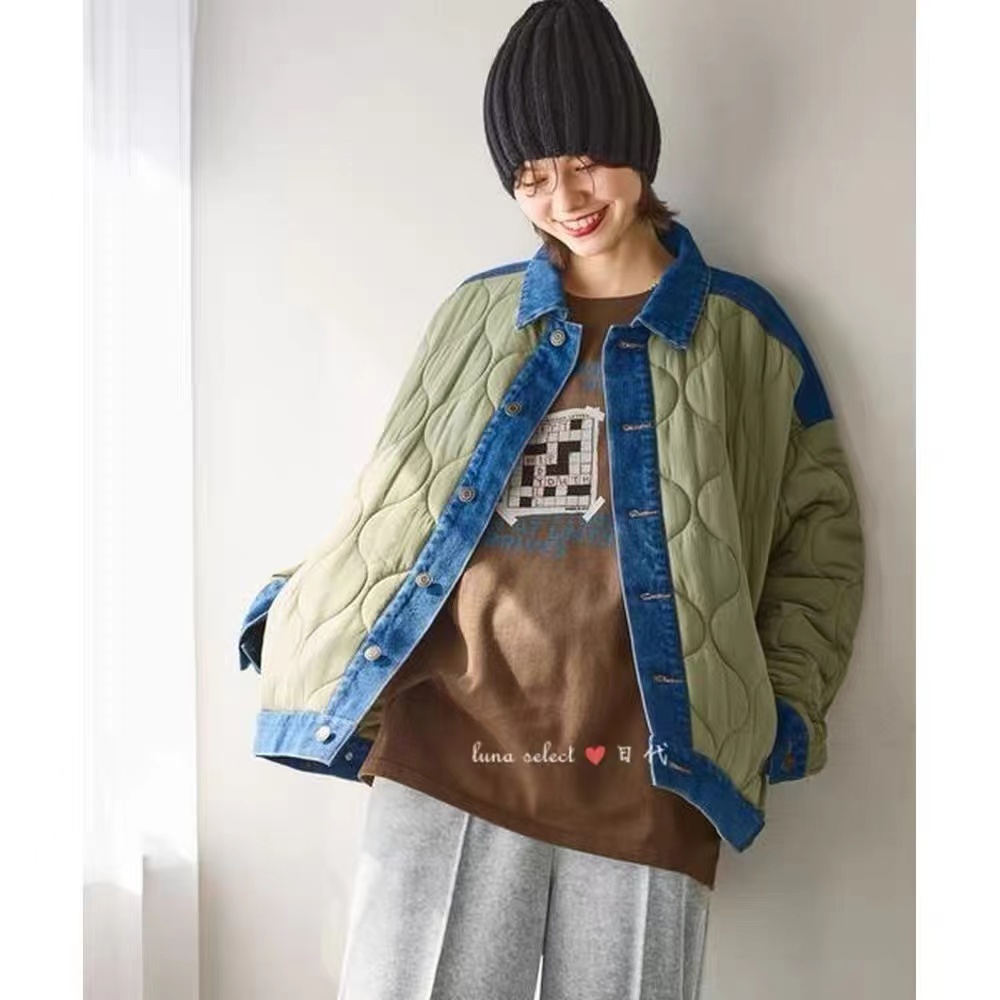 D120872棉服2025秋冬新款拼接菱格复古休闲夹棉衣外套