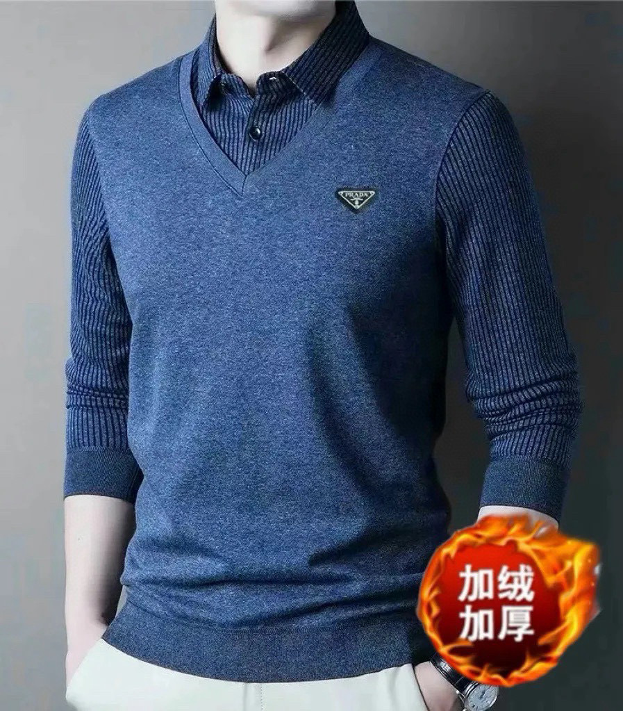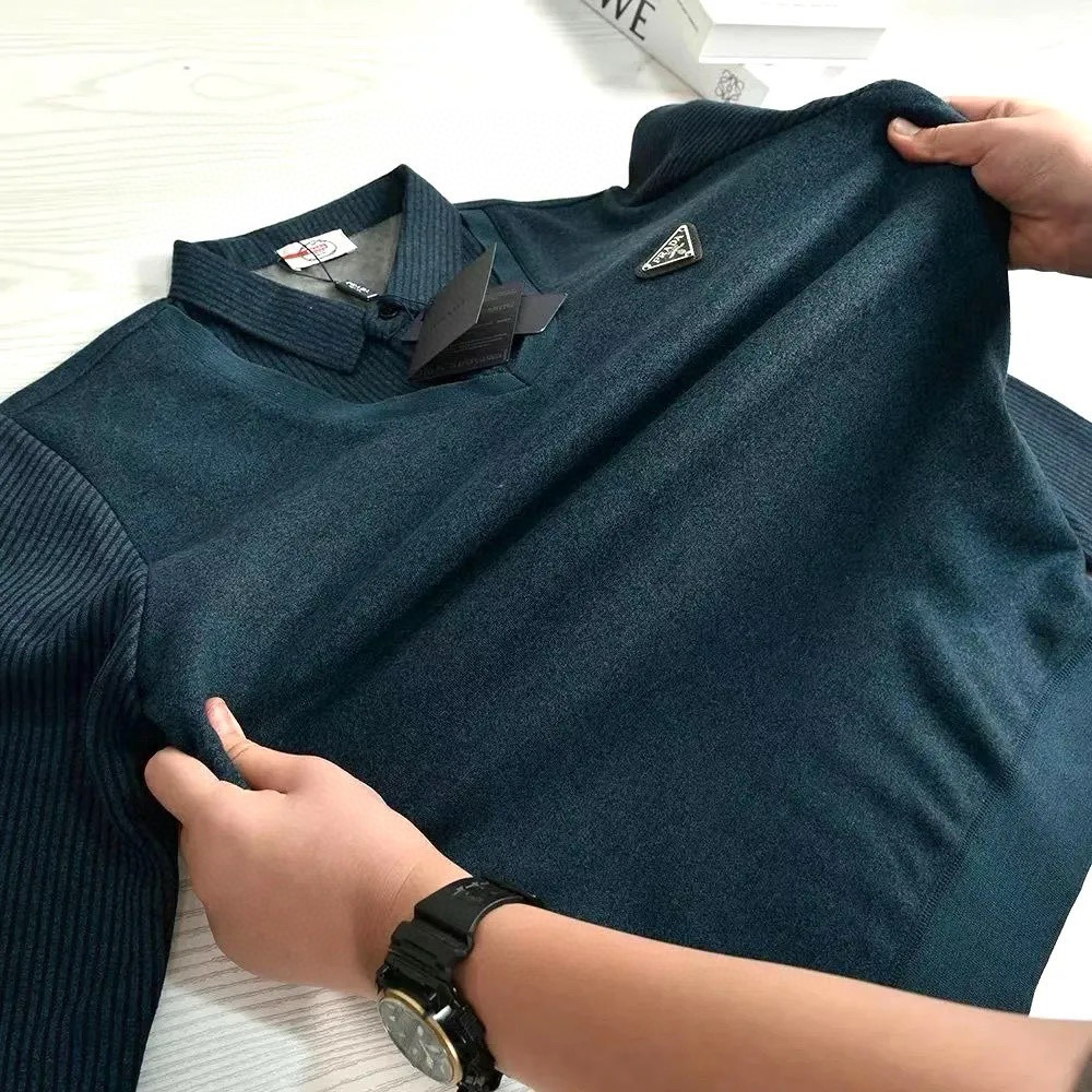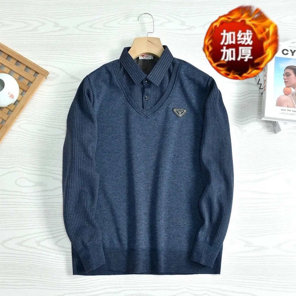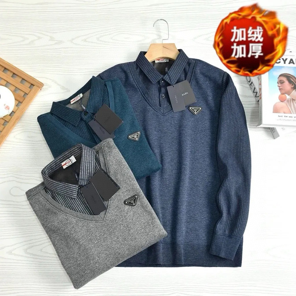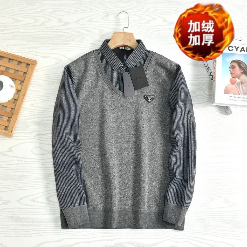 2025秋冬季新款PRADA(谱拉达)RB原单加绒加厚毛衣假两件!拍摄图片可以看出衣服非常有质感和厚度,不是薄薄的一件!入手一件,当两件穿!既经济,又时尚!十足的高级感!男神冬季B入单品!!