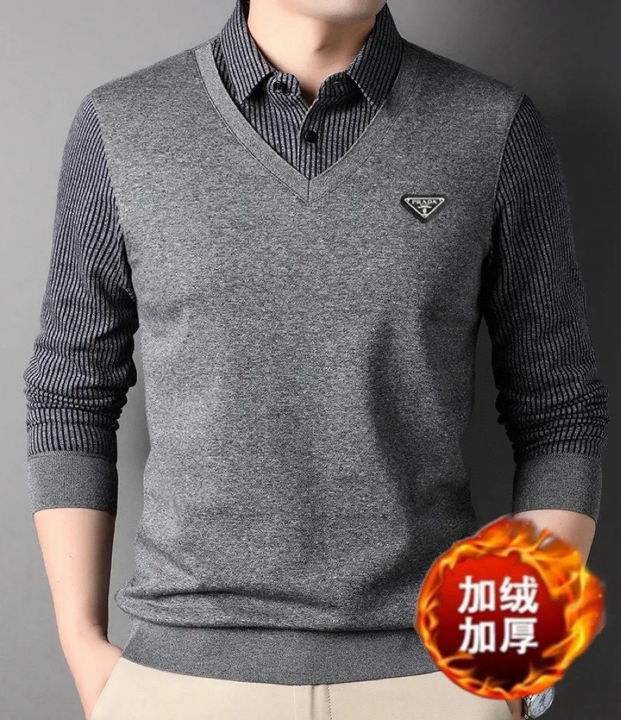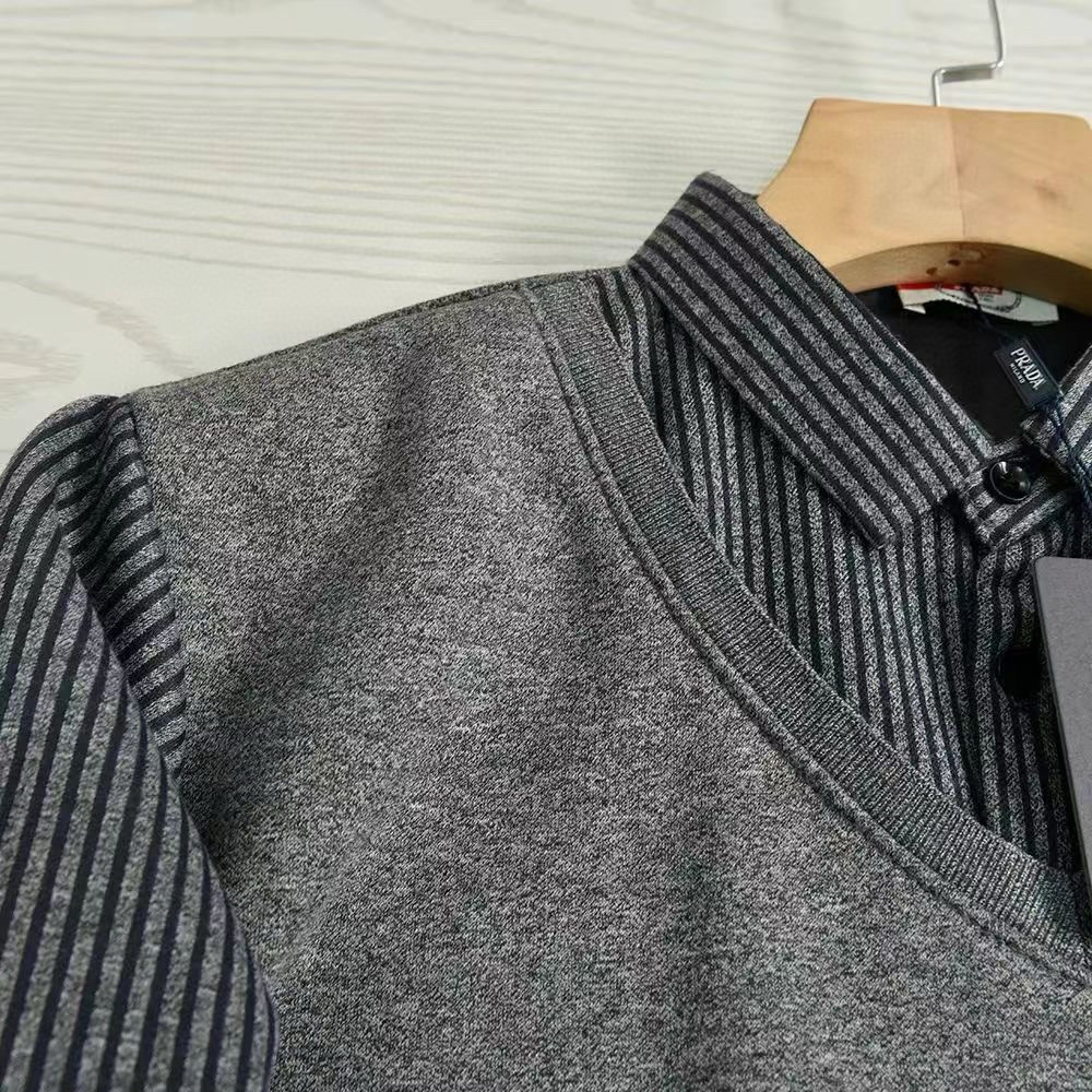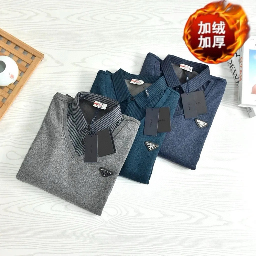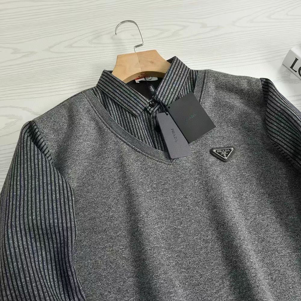 2025秋冬季新款PRADA(谱拉达)RB原单加绒加厚毛衣假两件!拍摄图片可以看出衣服非常有质感和厚度,不是薄薄的一件!入手一件,当两件穿!既经济,又时尚!十足的高级感!男神冬季B入单品!!