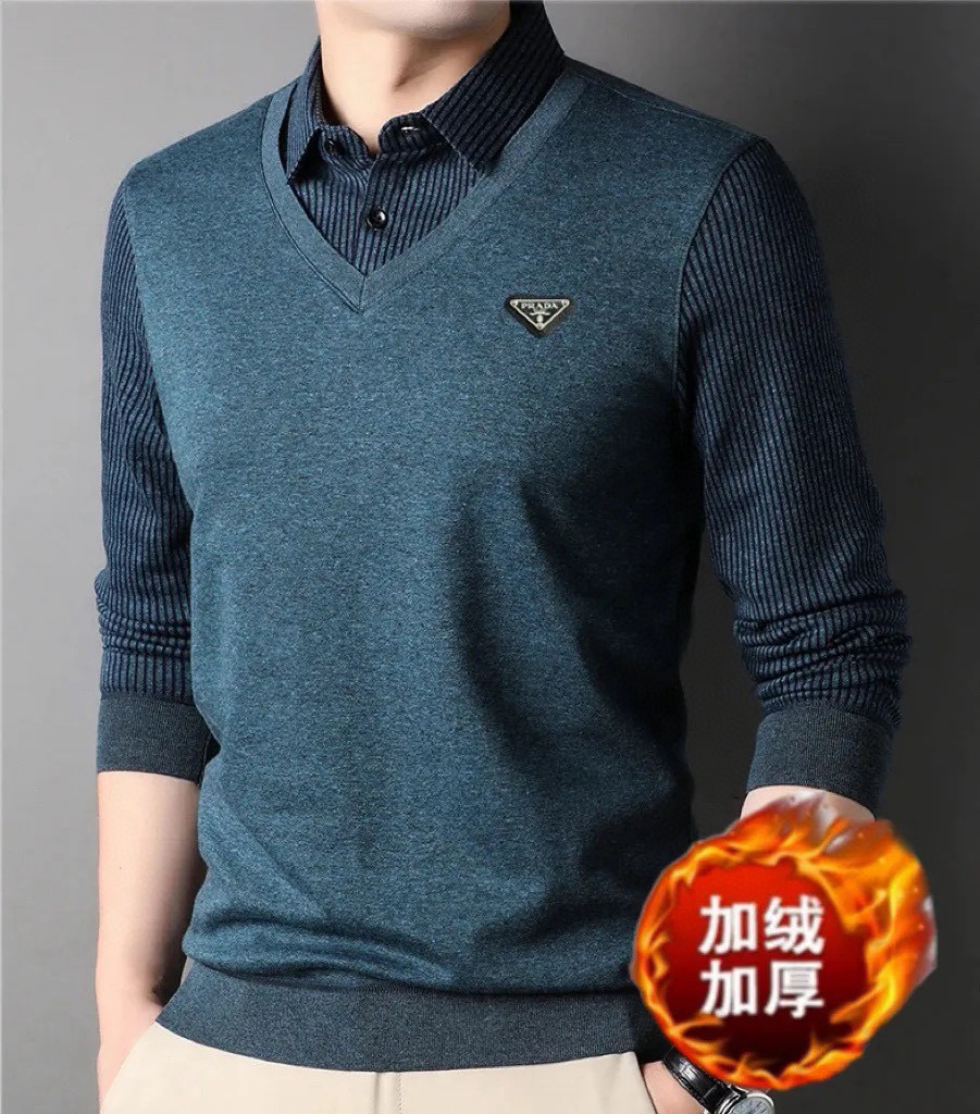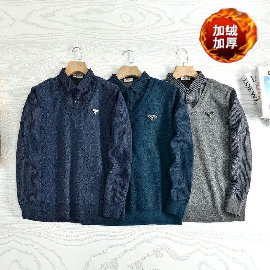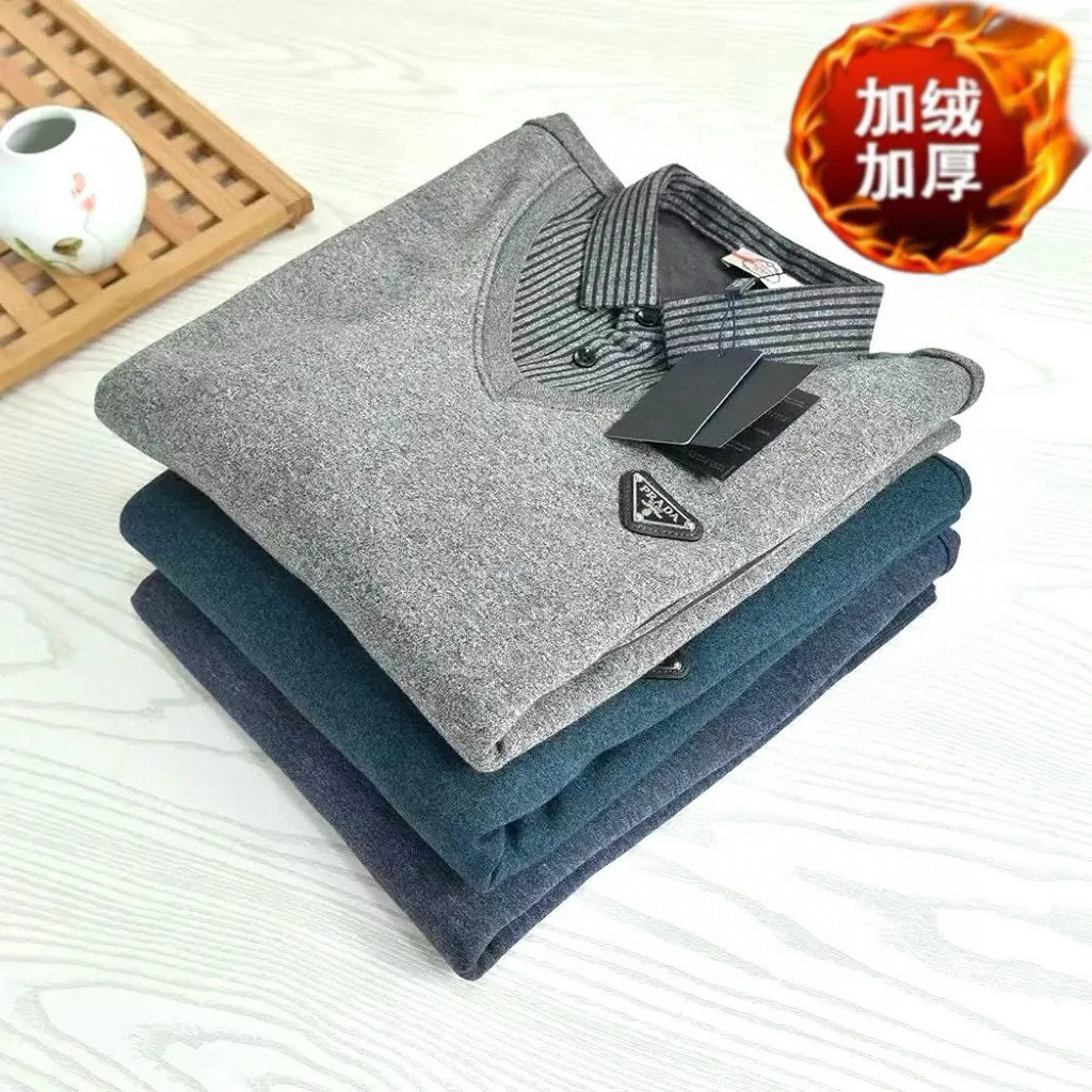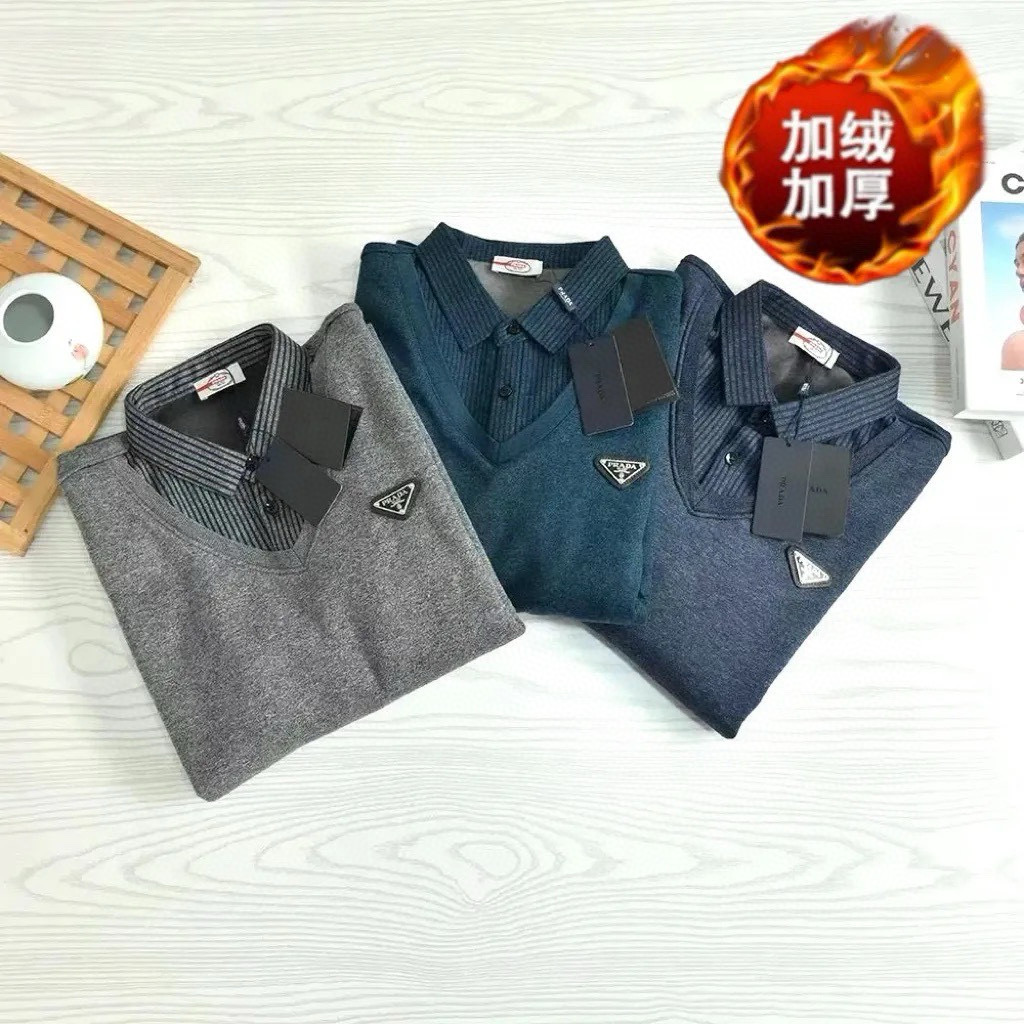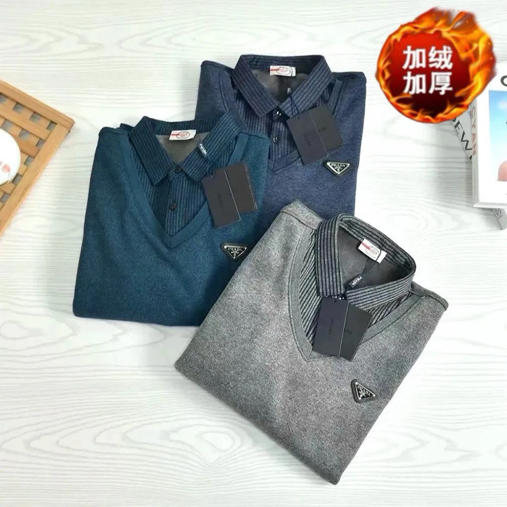 2025秋冬季新款PRADA(谱拉达)RB原单加绒加厚毛衣假两件!拍摄图片可以看出衣服非常有质感和厚度,不是薄薄的一件!入手一件,当两件穿!既经济,又时尚!十足的高级感!男神冬季B入单品!!