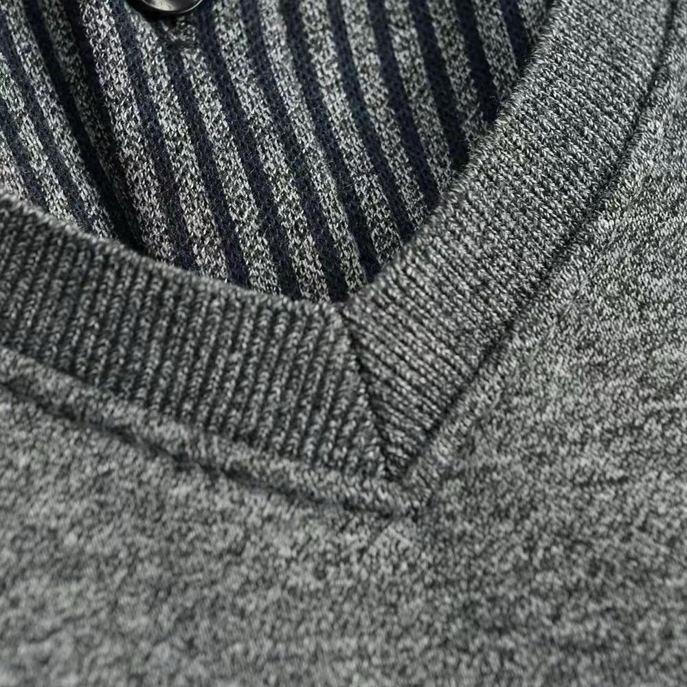 鸡心领式坎肩搭配衬衫领,复古与时尚并存!袖口、下摆松紧收口设计,防风保暖!纯色坎肩衣身与条纹衬衣领及衣袖反差设计增添了视觉效果!弹力面料加持松紧有型!