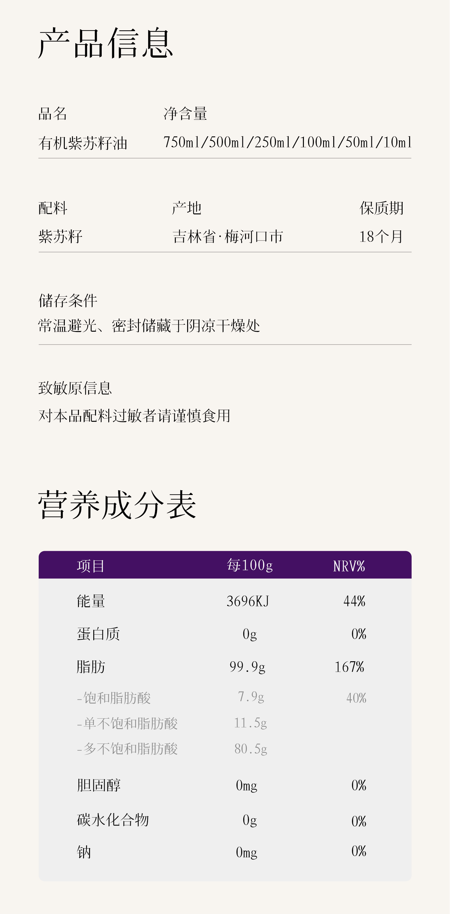 全食物日记x妆食记 有机紫苏籽油500ml