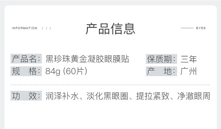 【眼贴】。笛爱儿黑珍珠眼膜贴改善黑眼圈眼袋细纹补水眼贴