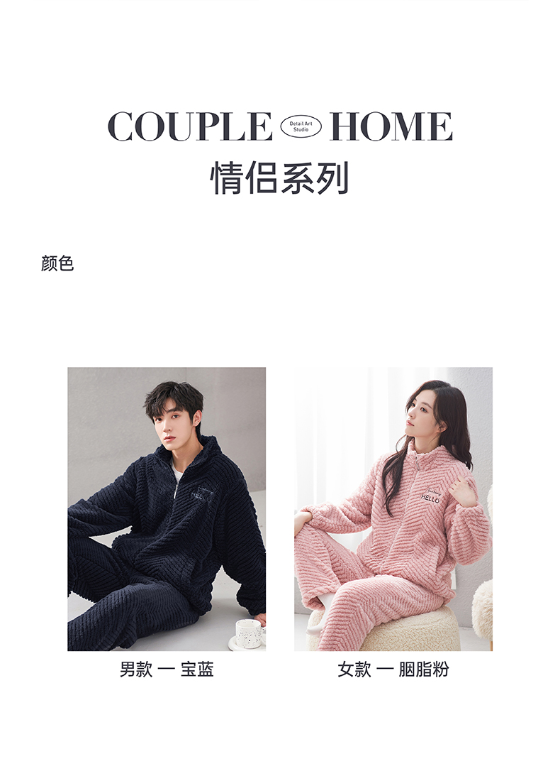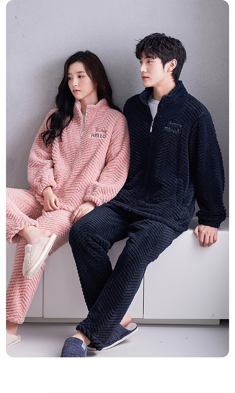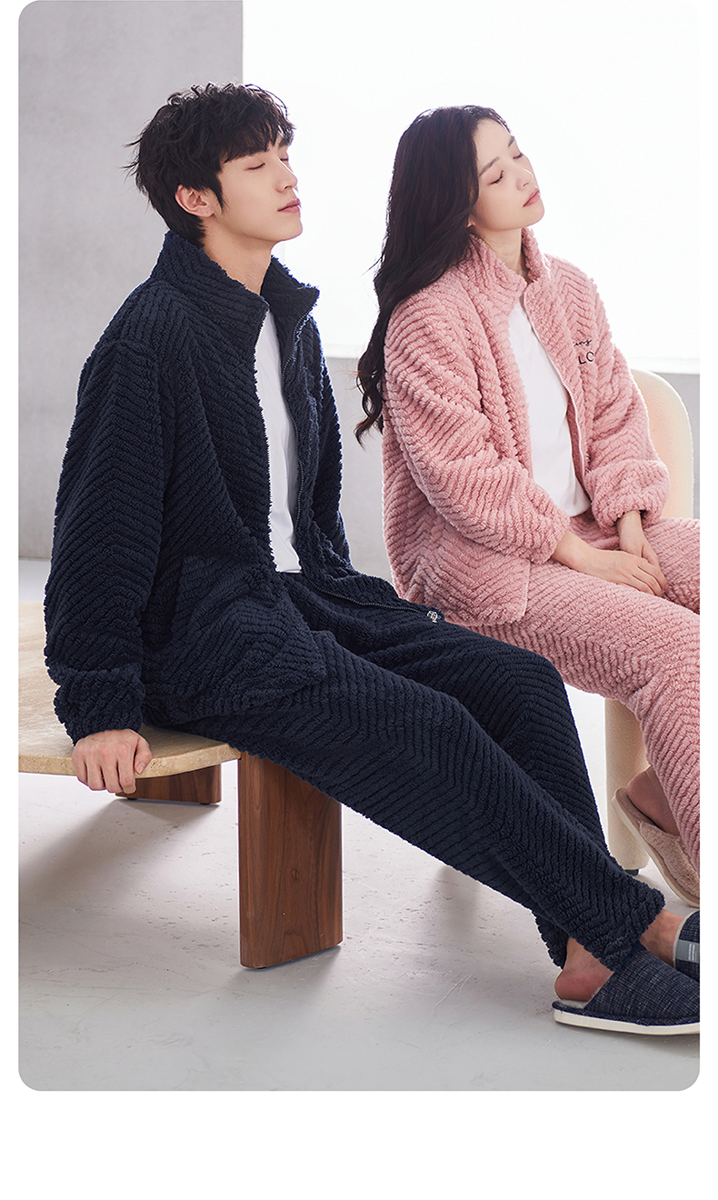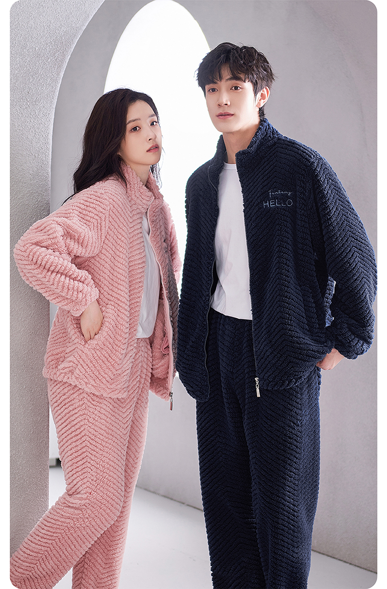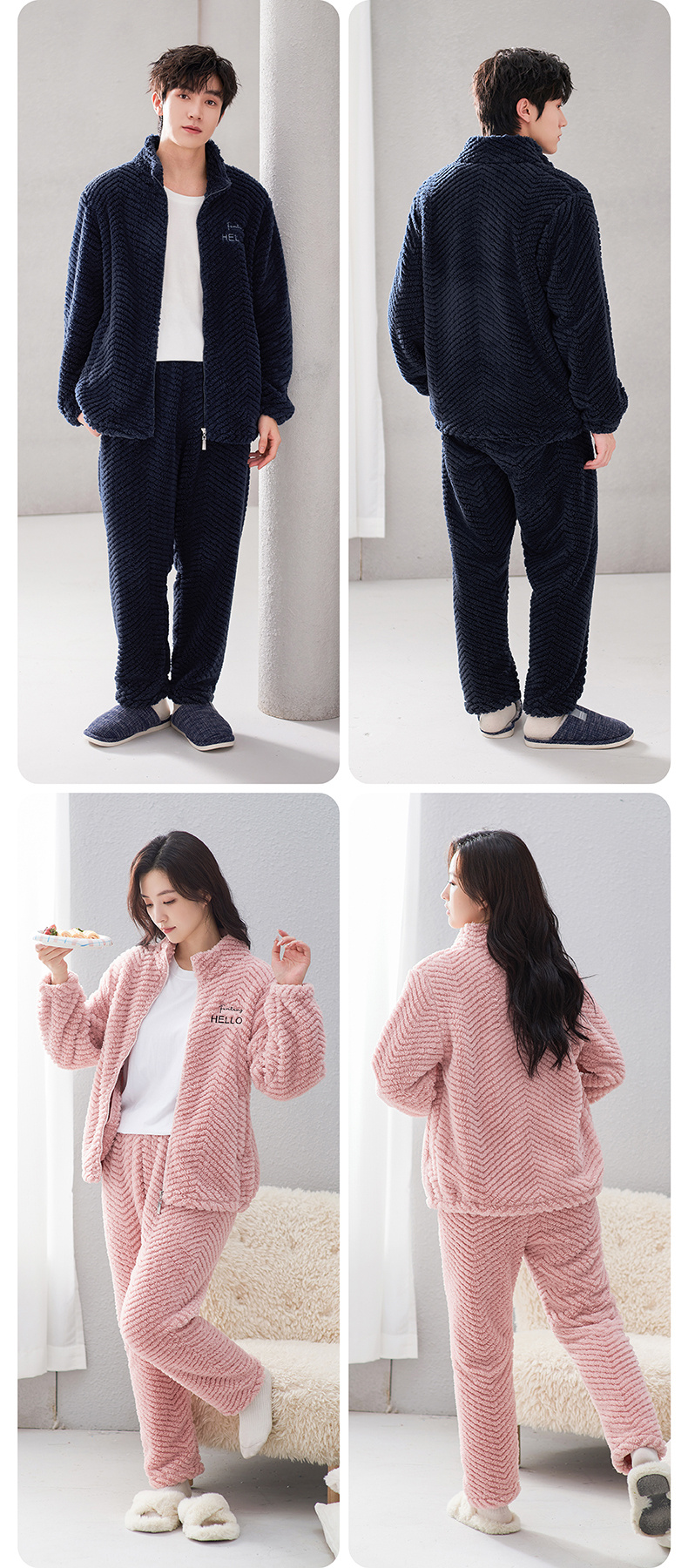 <有书独家>芬腾可外穿拉链珊瑚绒睡衣秋冬情侣加绒加厚保暖套装法兰绒家居服