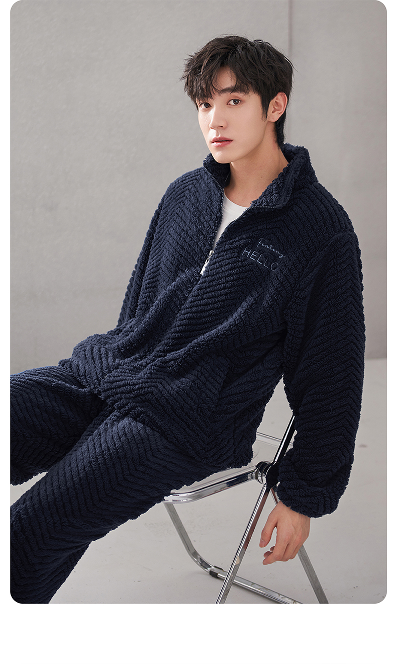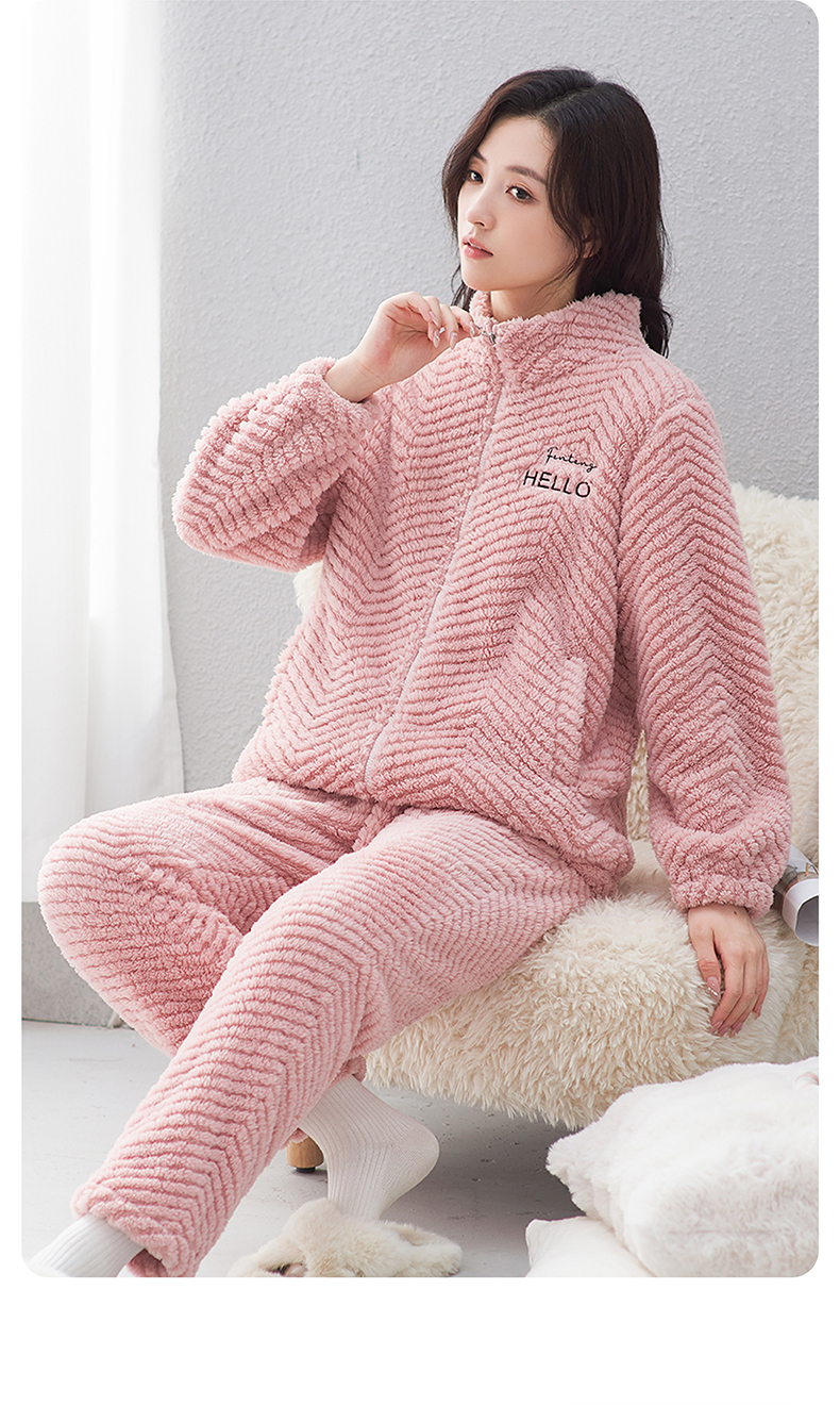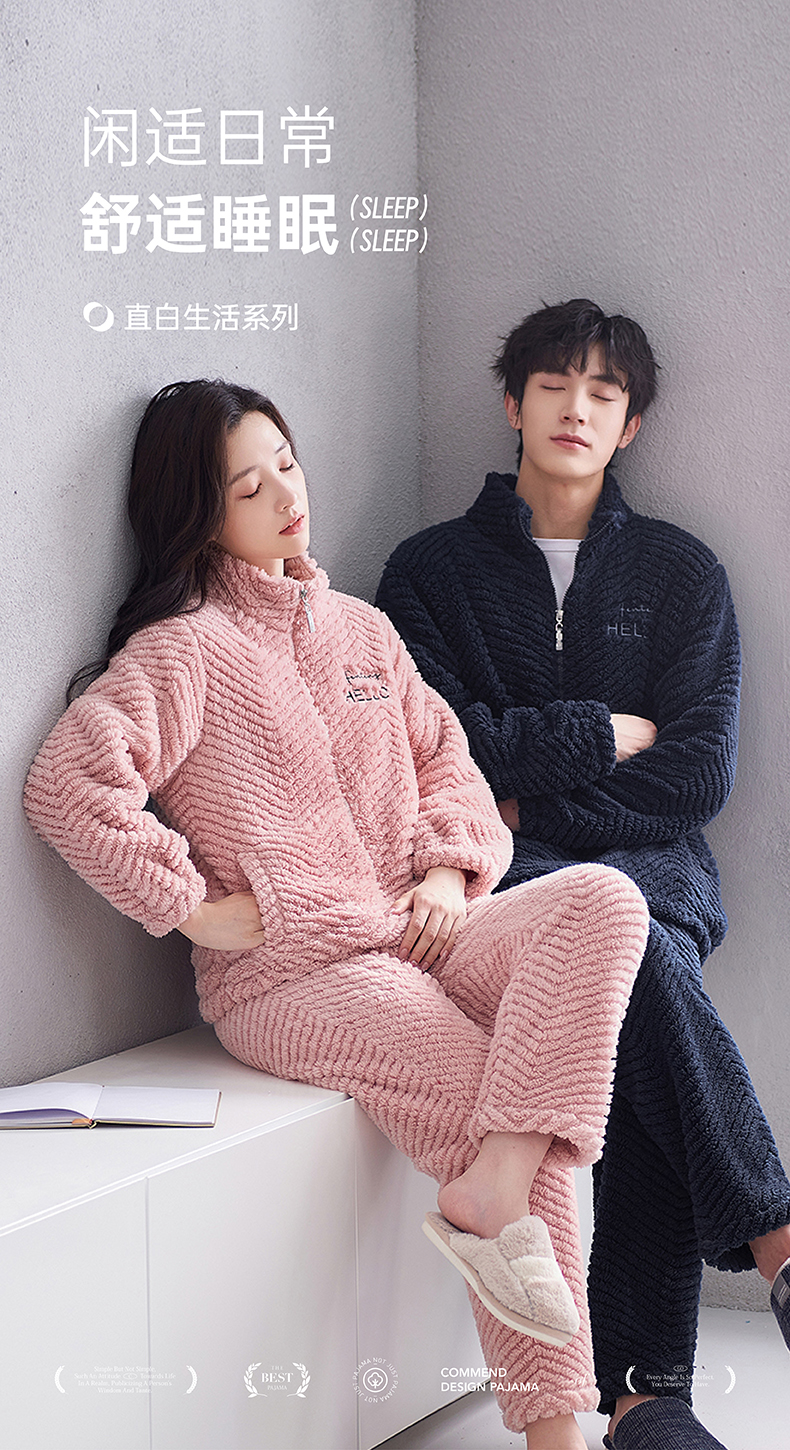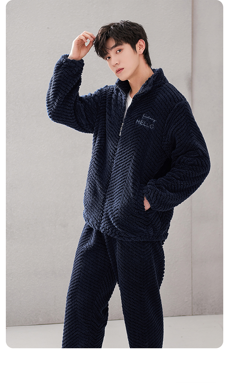 <有书独家>芬腾可外穿拉链珊瑚绒睡衣秋冬情侣加绒加厚保暖套装法兰绒家居服