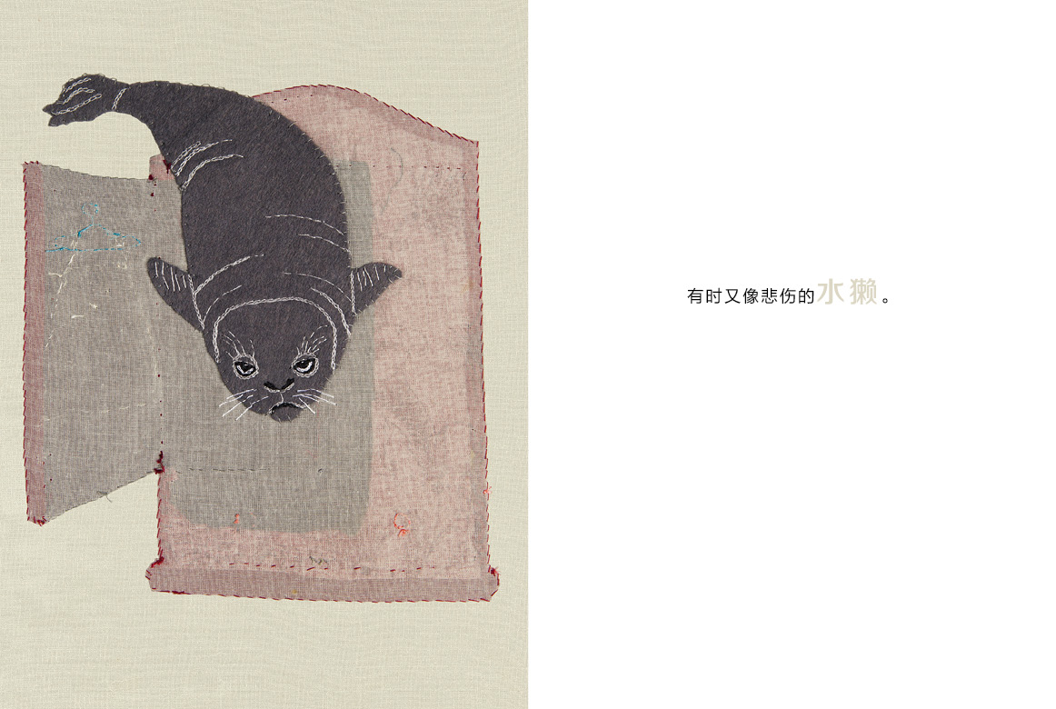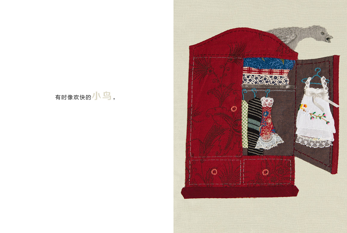 女儿喜欢躲起来,就像一只藏进壳里的蜗牛。而且,很难找到她。有时像欢快的小鸟,有时又像悲伤的。温柔起来像兔子,野蛮起来像鳄鱼……一正一反的画面中,隐藏着截然不同的图案,也象征着女儿百变的形象。然而不管女儿的形象如何变化,慵懒或谨慎、强壮或柔弱,她始终是母亲心中无比珍贵的礼物。