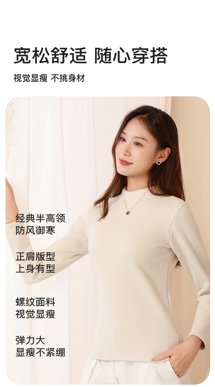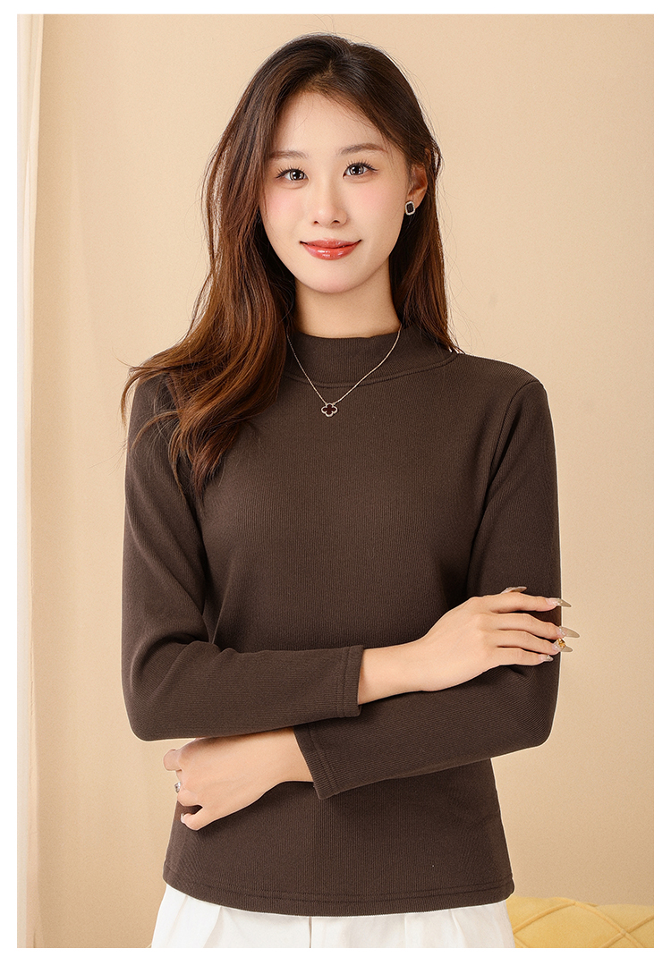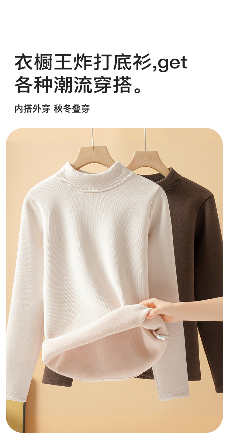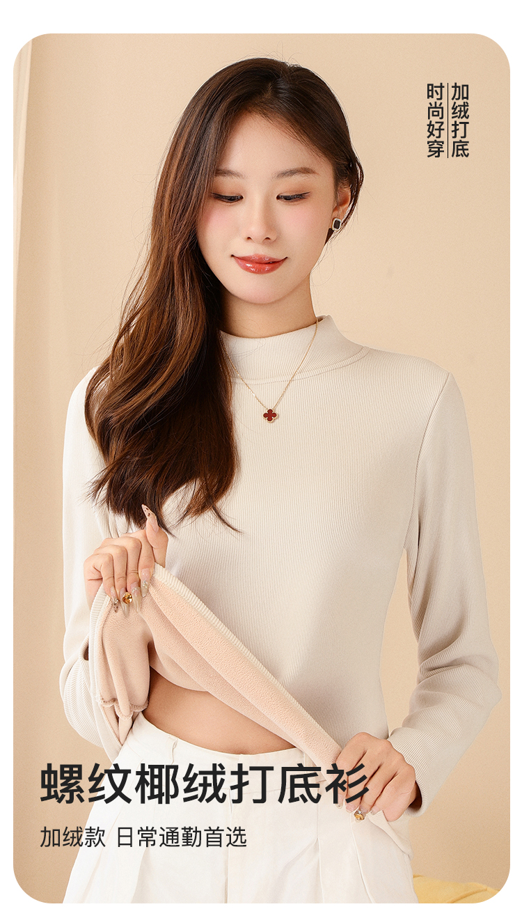 【加绒加厚】秋冬半高领女式打底衫时尚内搭上衣女一体加绒保暖螺纹4890螺纹椰绒打底衫