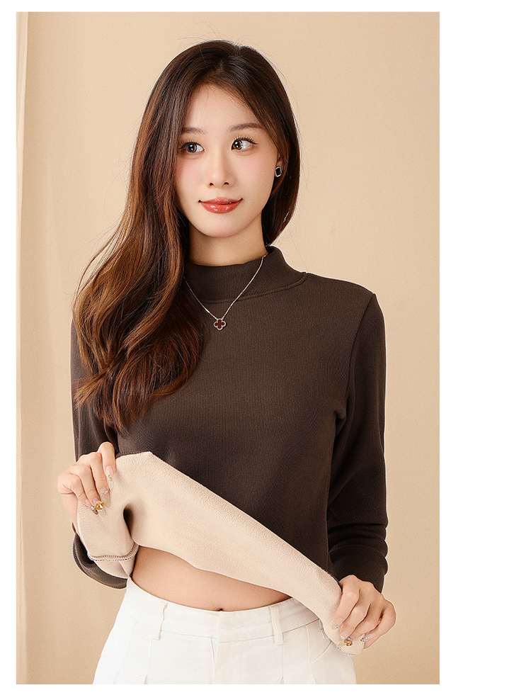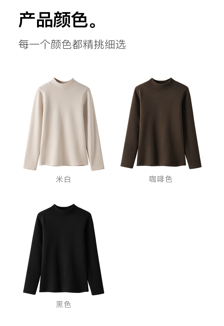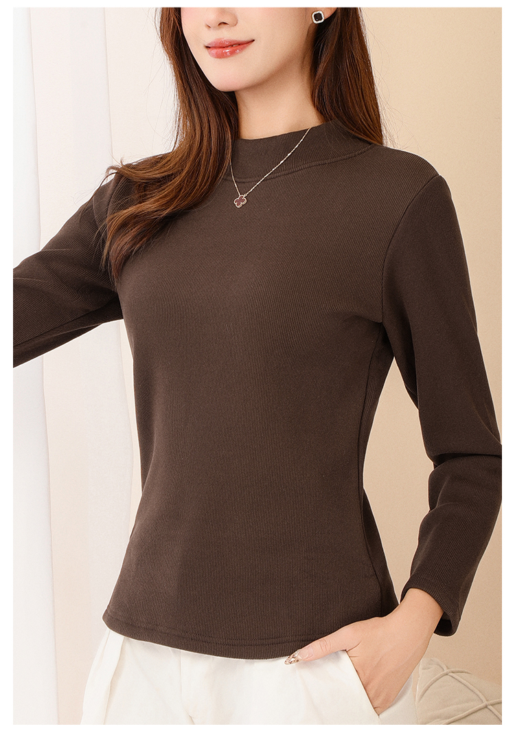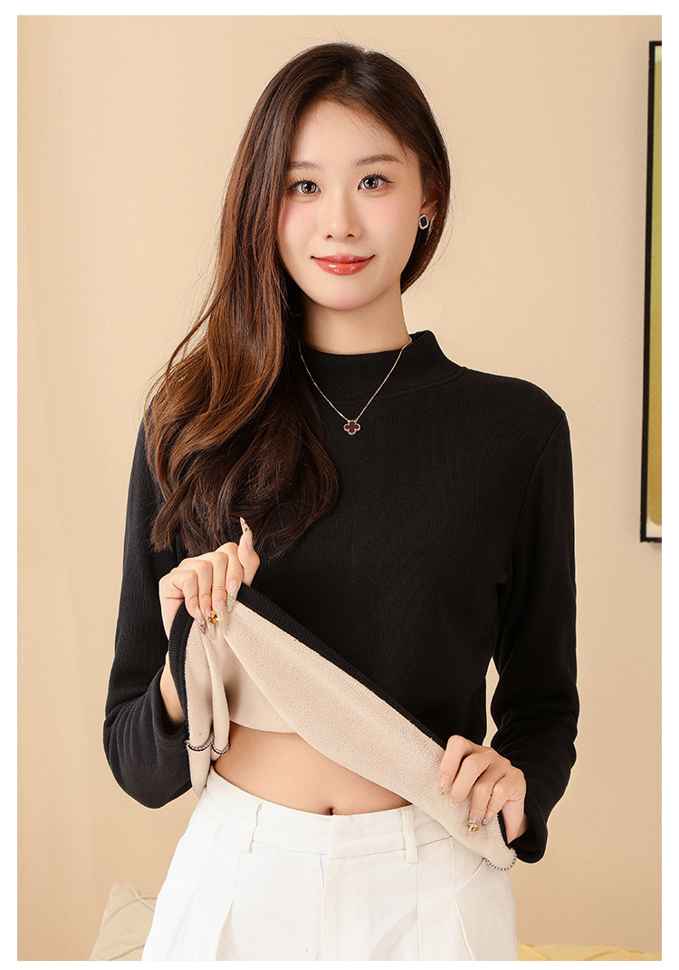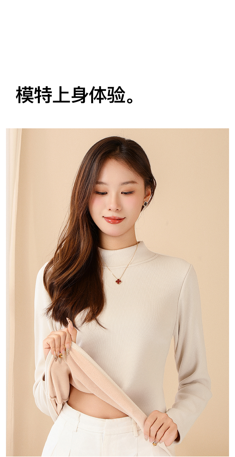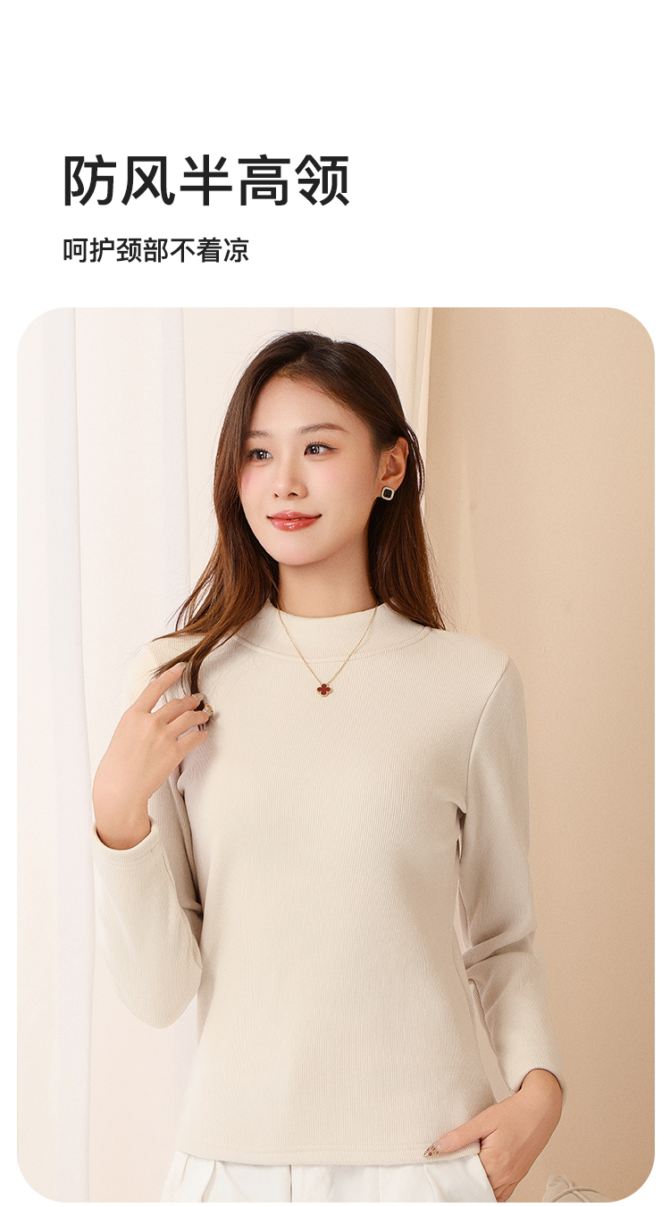 【加绒加厚】秋冬半高领女式打底衫时尚内搭上衣女一体加绒保暖螺纹4890螺纹椰绒打底衫