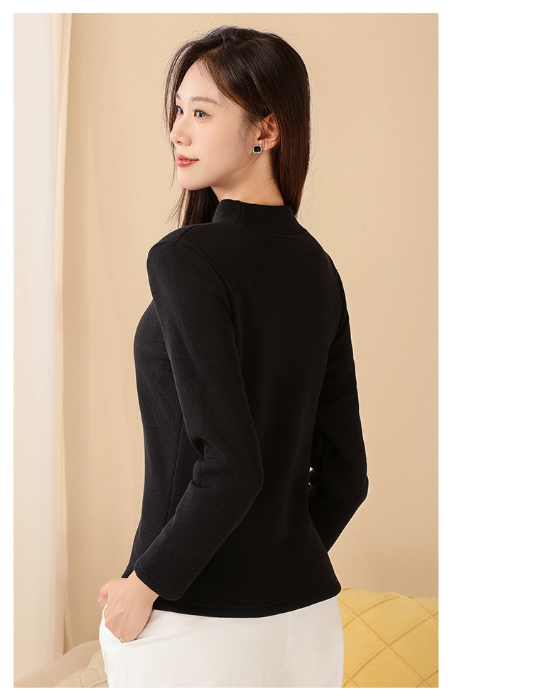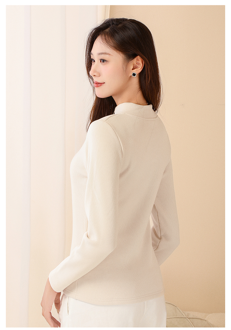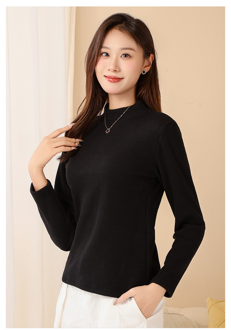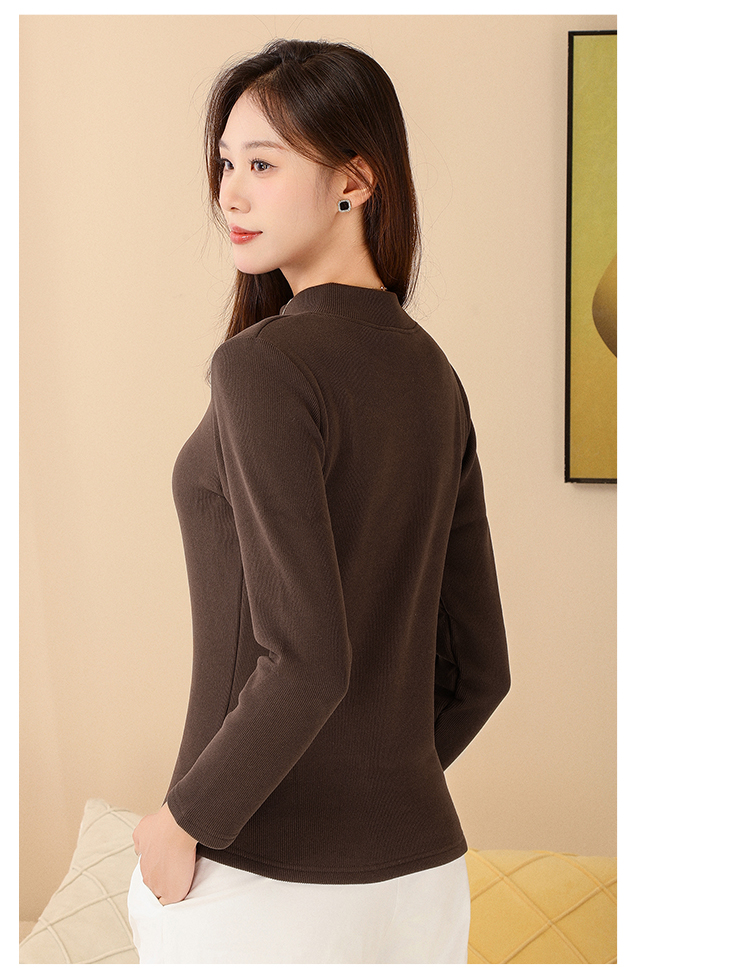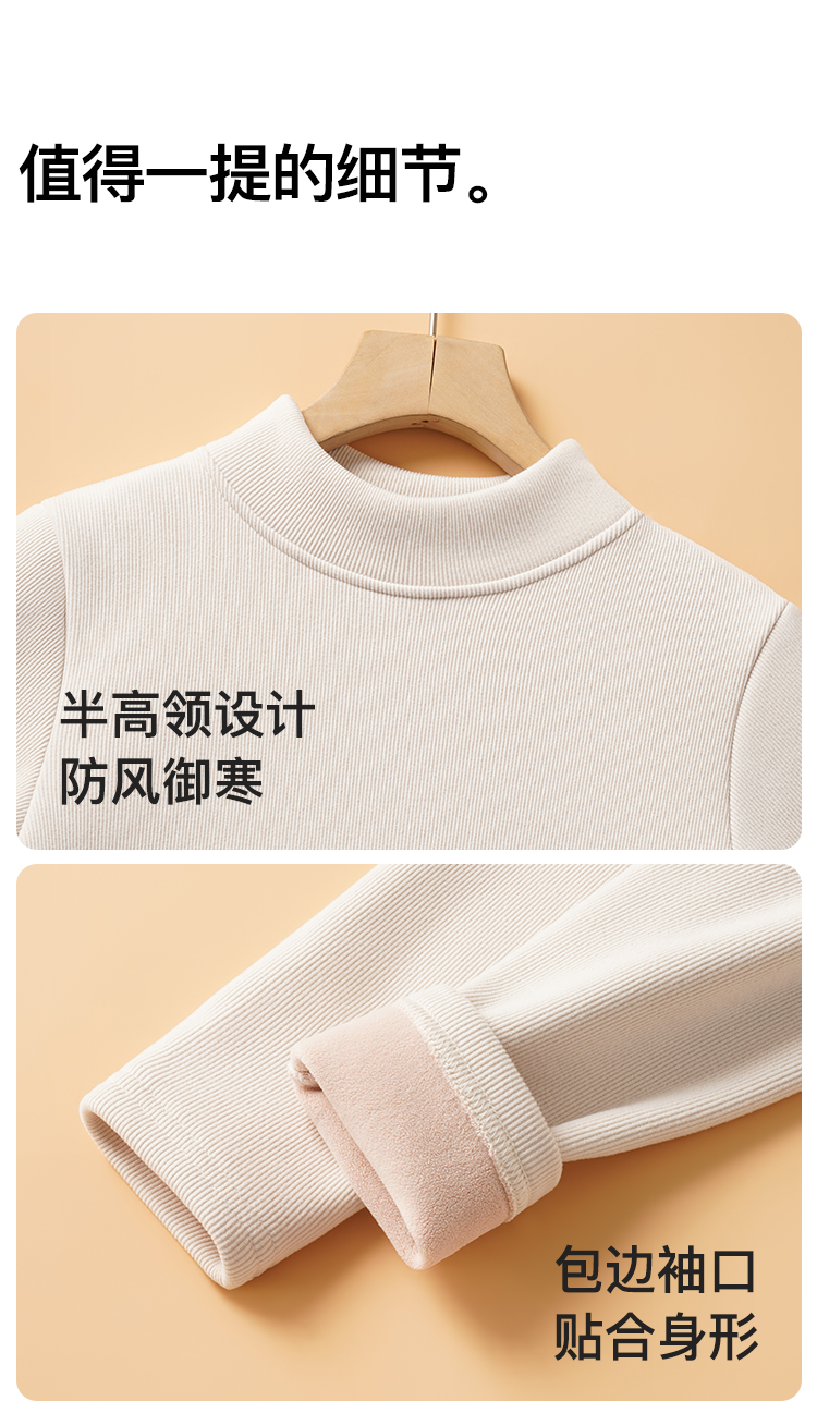 【加绒加厚】秋冬半高领女式打底衫时尚内搭上衣女一体加绒保暖螺纹4890螺纹椰绒打底衫