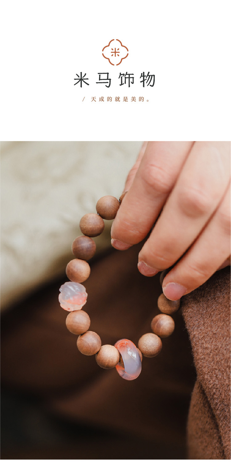 米马原创设计天然冰飘醒狮搭配迈索尔老山檀手串 一半素心以清简一半寂静许清欢