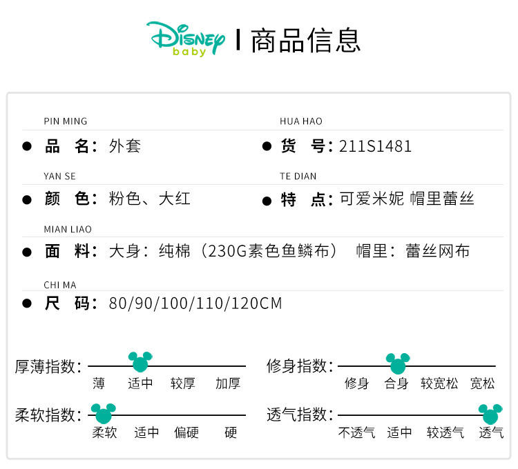 迪士尼童装 儿童外套男童春秋款新款女宝宝上衣小孩满印衣服211S1481