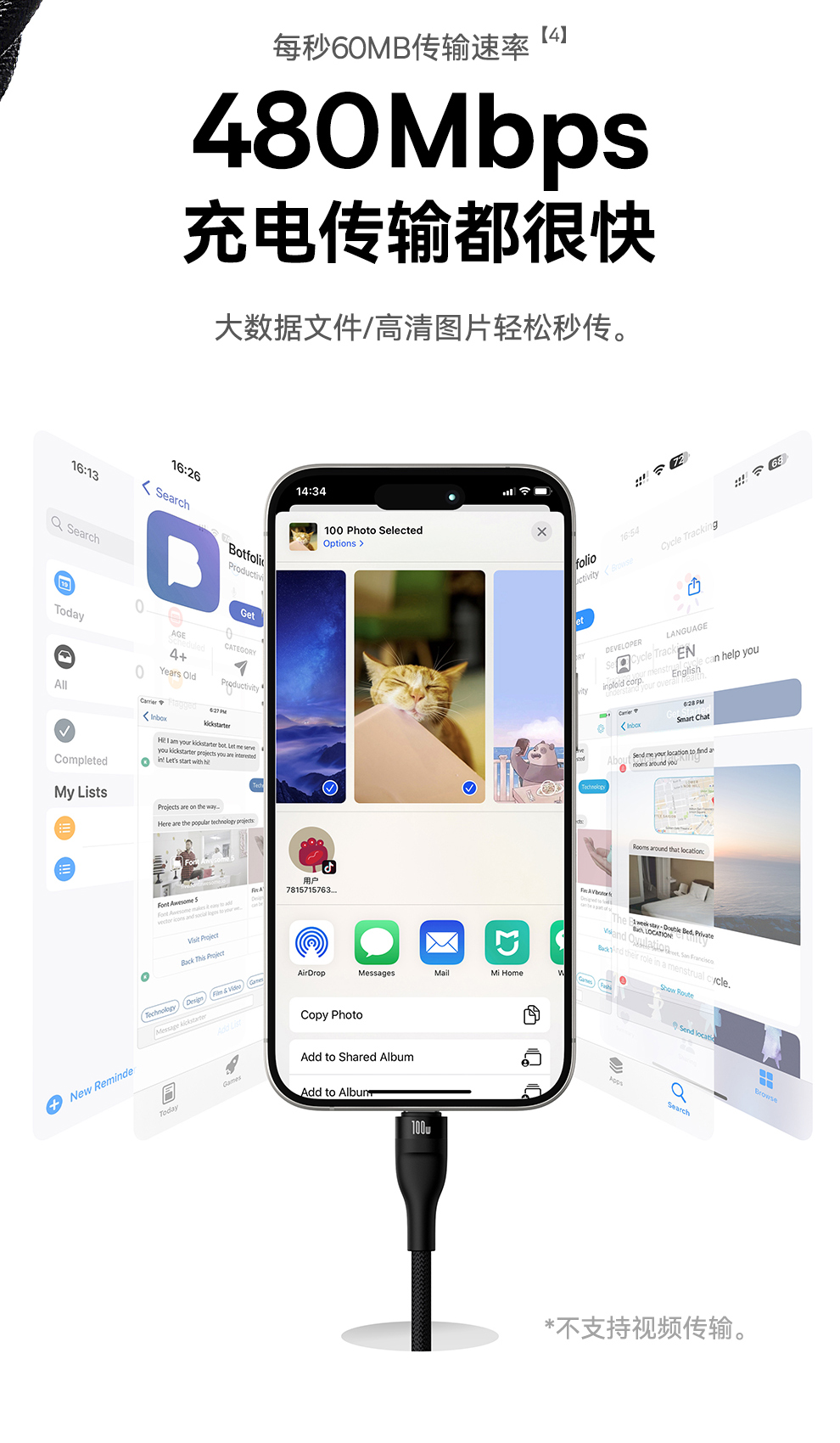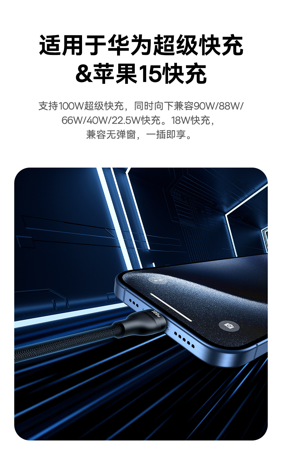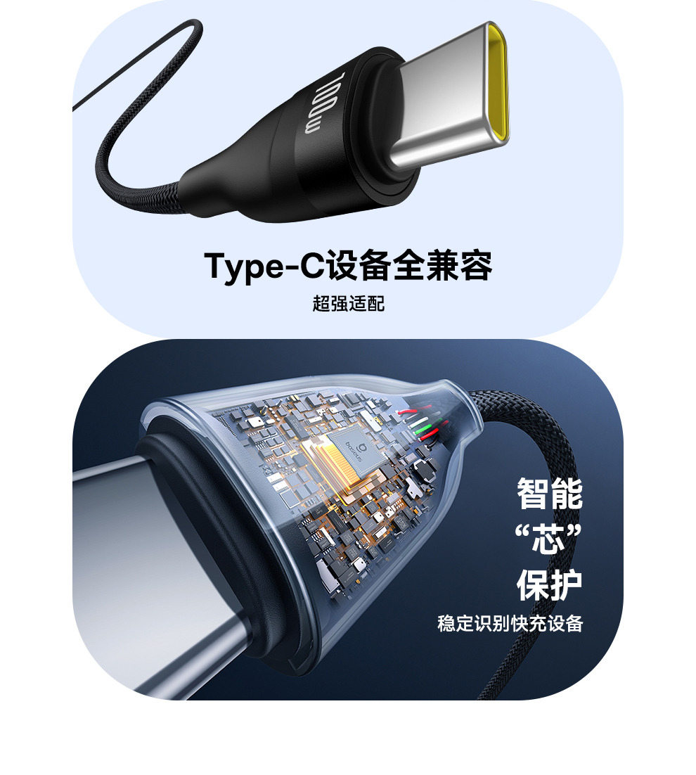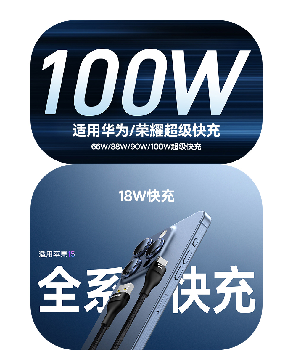 【69元3件】倍思 闪速系列 2 全兼容快充数据线 USB to Type-C 100W