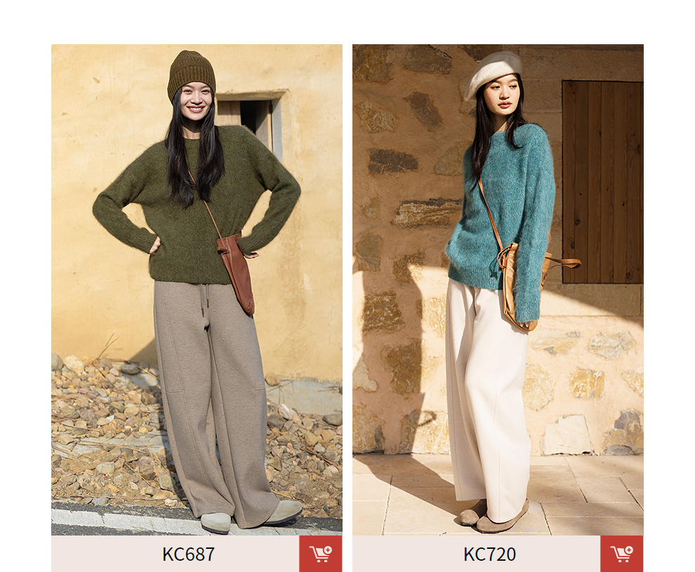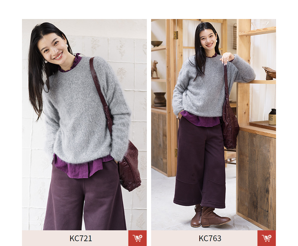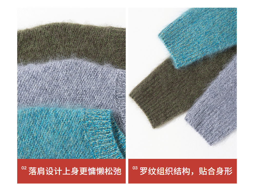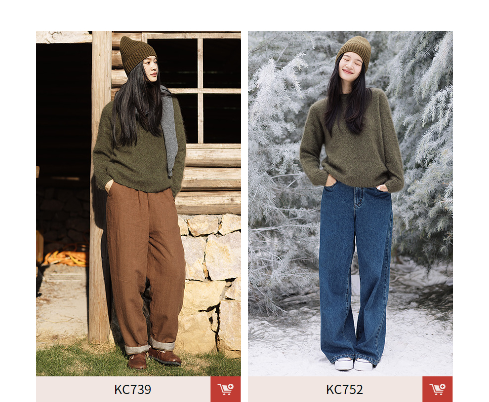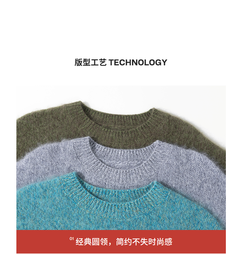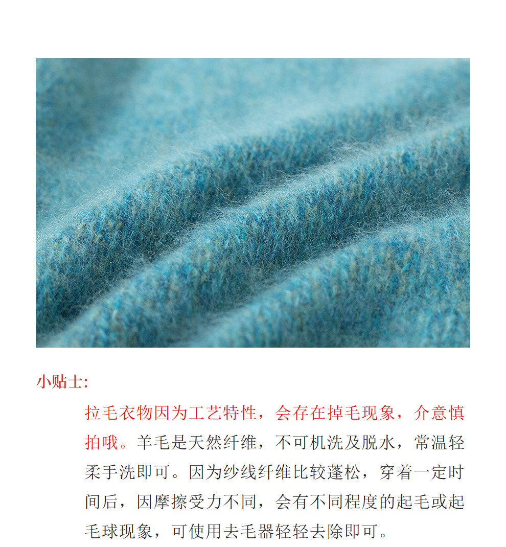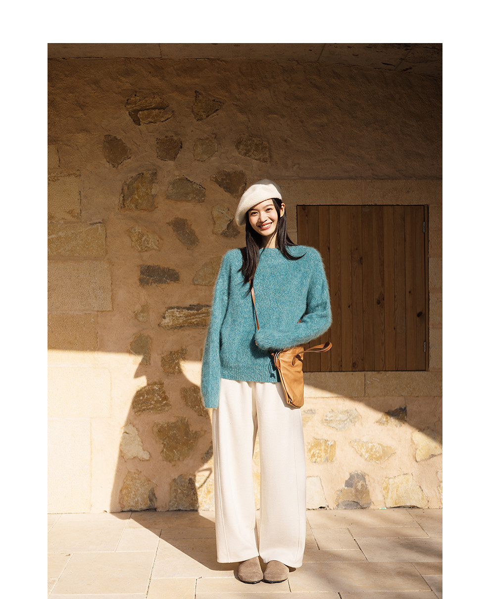 绽放749朵/100%绵羊毛宽松花纱拉毛圆领套头毛针织衫文艺毛衣女冬