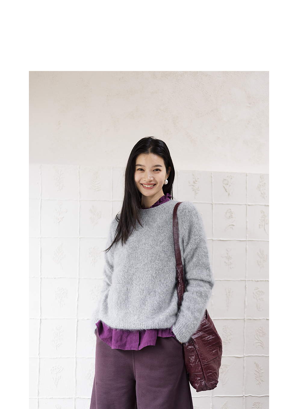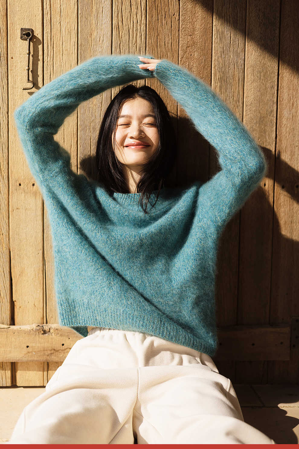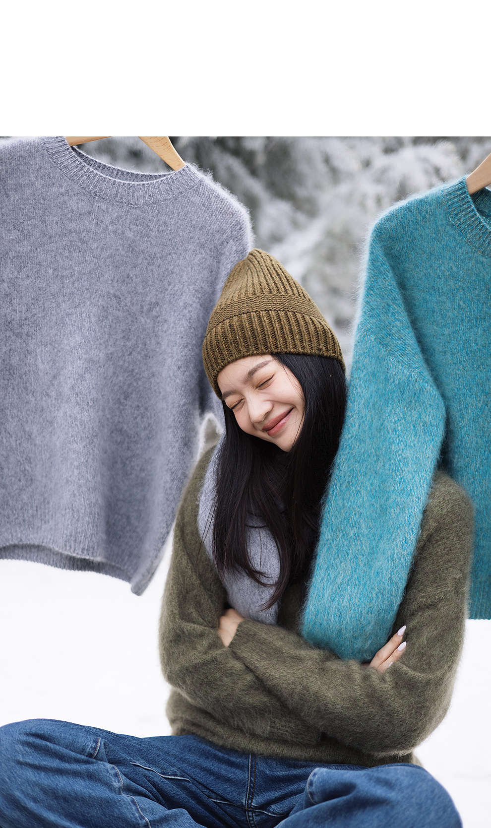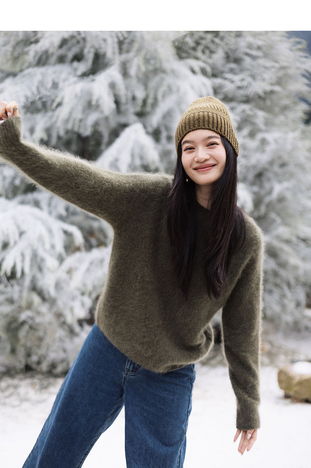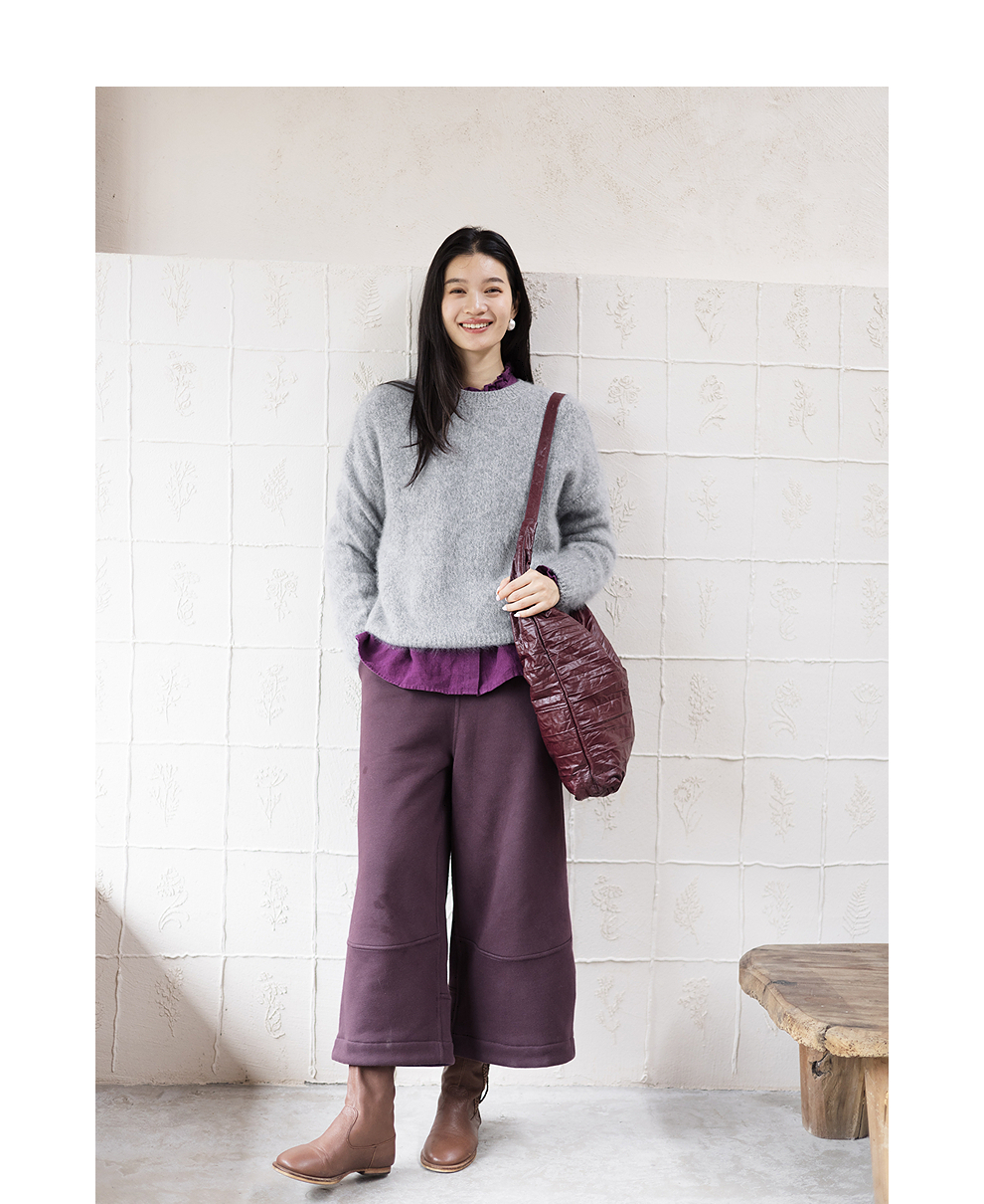绽放749朵/100%绵羊毛宽松花纱拉毛圆领套头毛针织衫文艺毛衣女冬