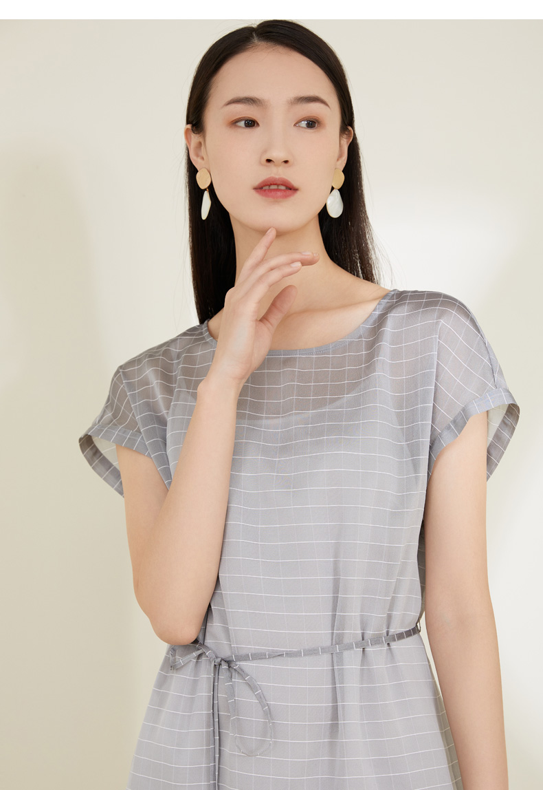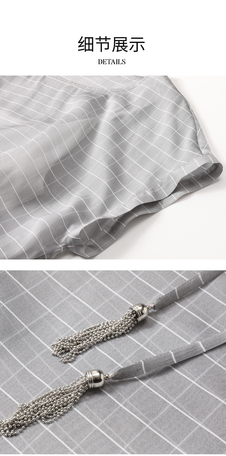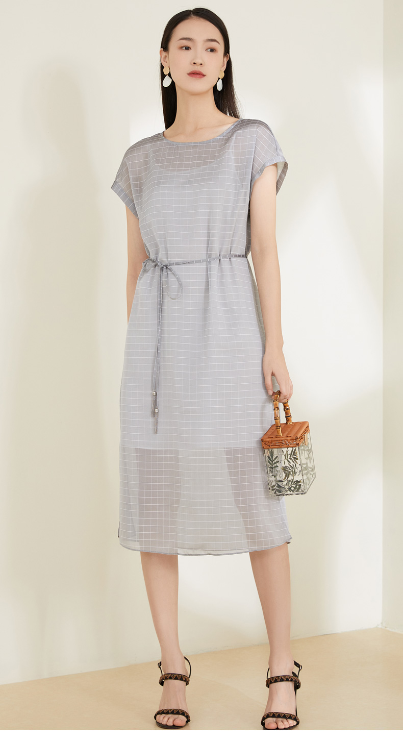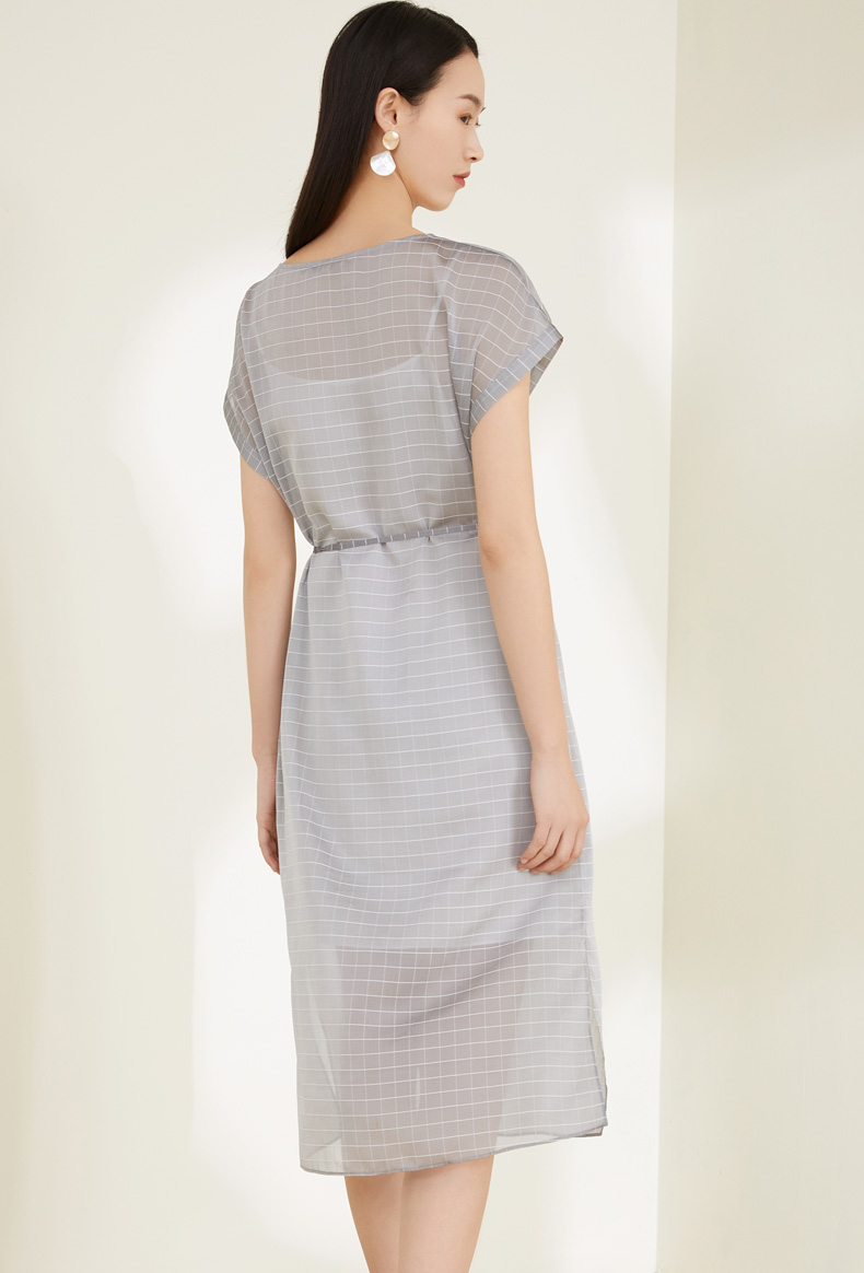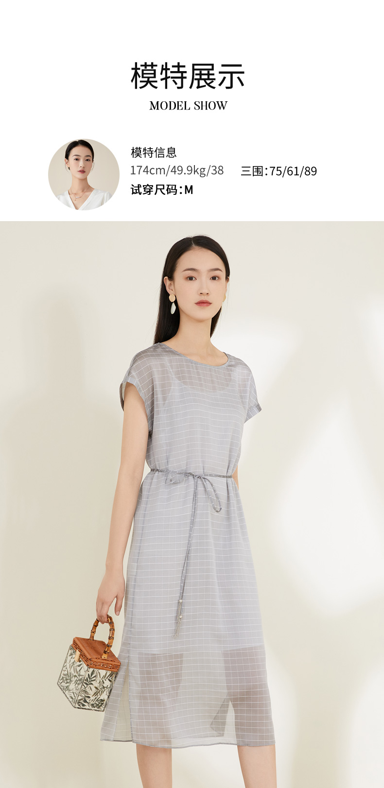 玳莎格子两件套连袖连衣裙欧根纱圆领夏季别致裙子 CB35113