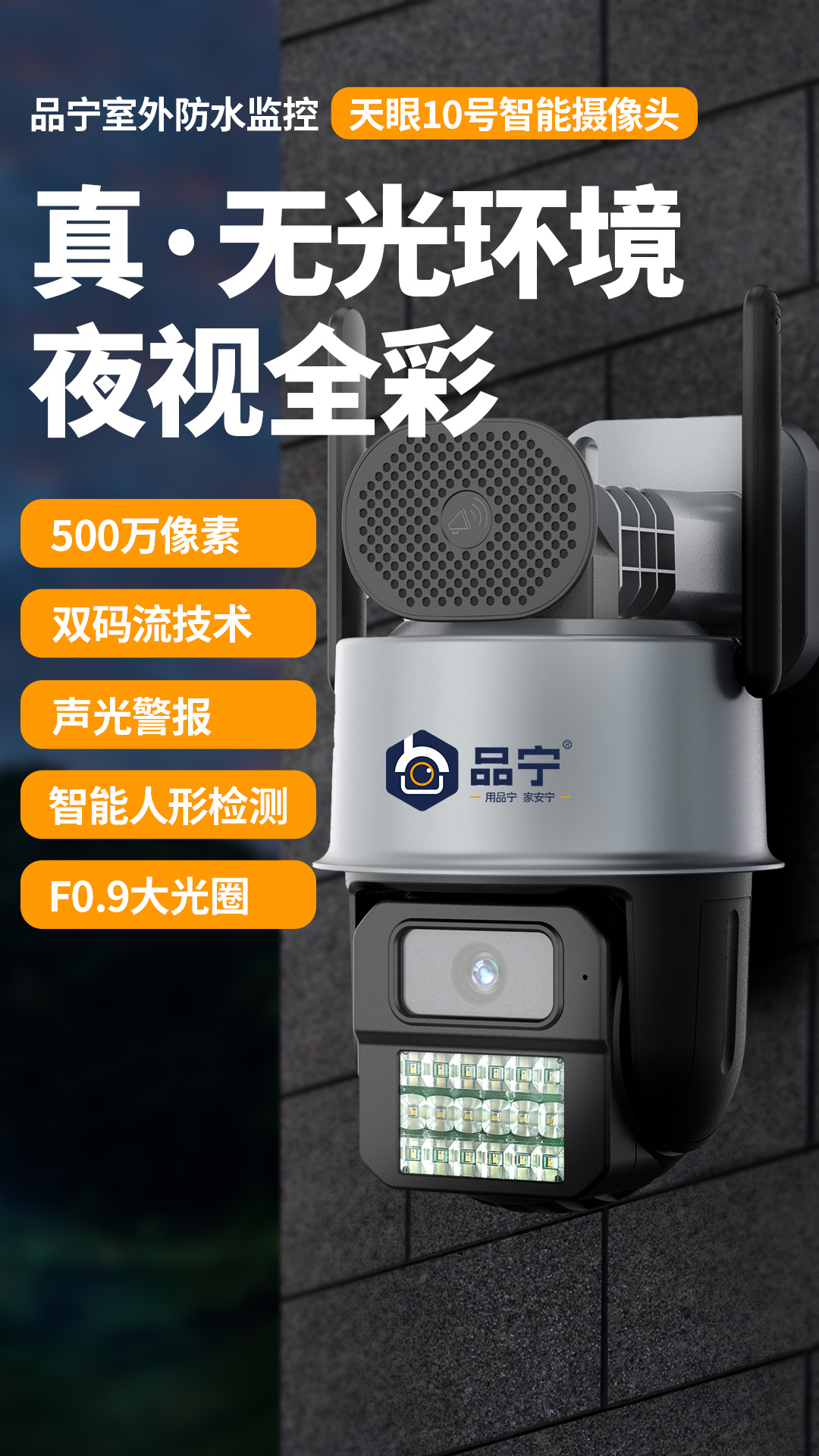 品宁新品黑科技天眼10号WiFi款500万高清像素智能人形侦测