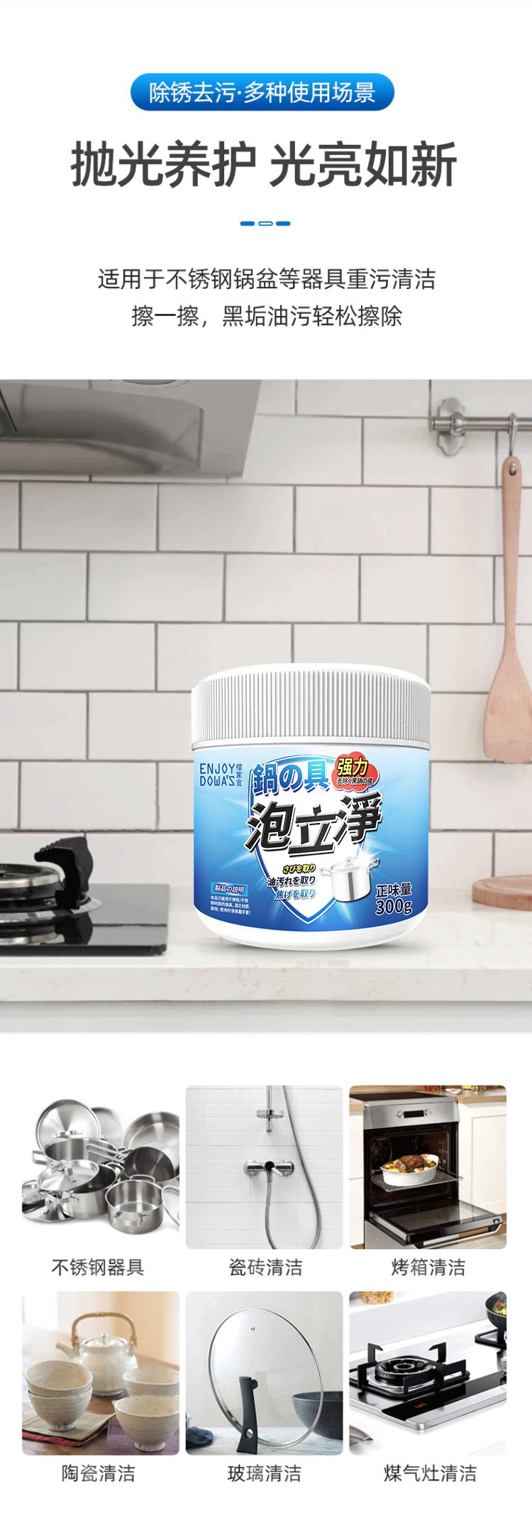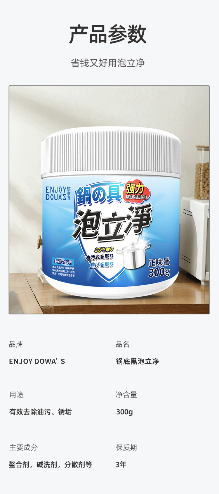 【直击锅底黑垢】 ENJOY DOWA'S不锈钢洗锅底清洁剂厨房去油污洗锅清洁膏300g