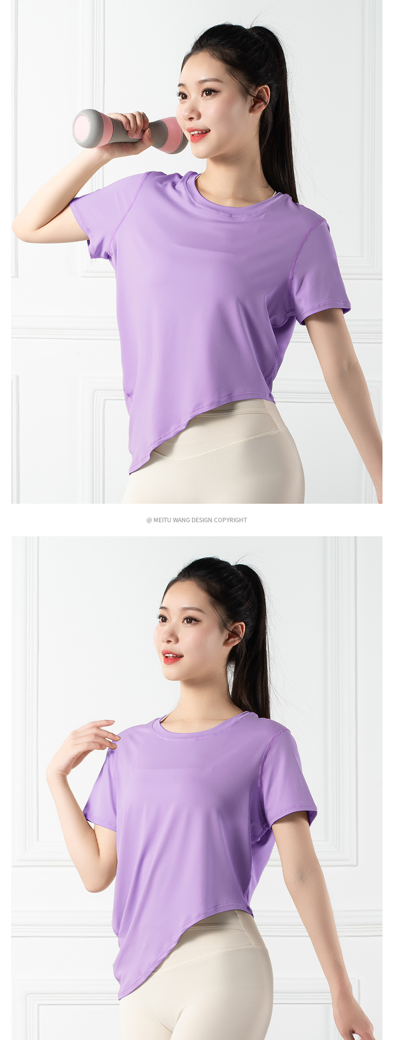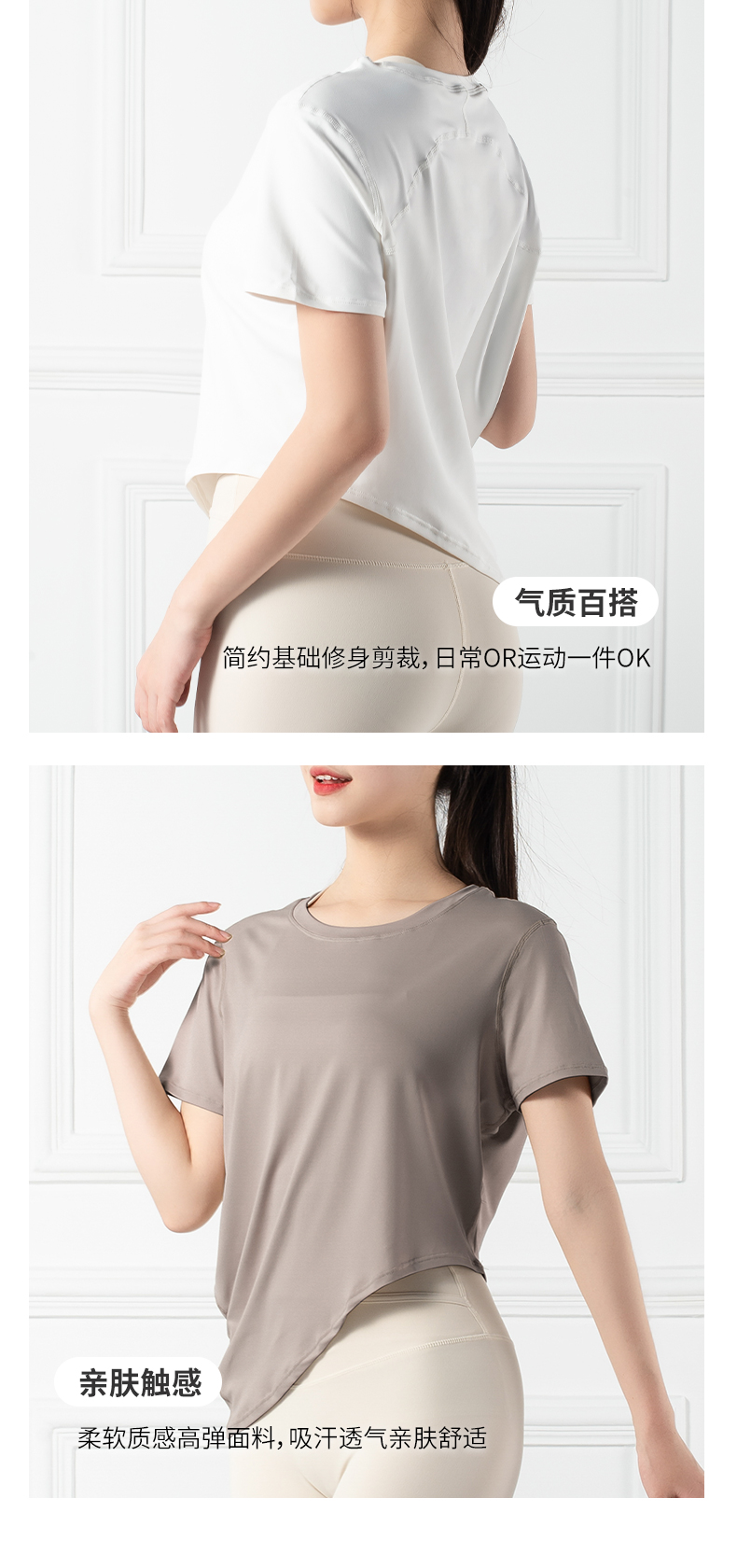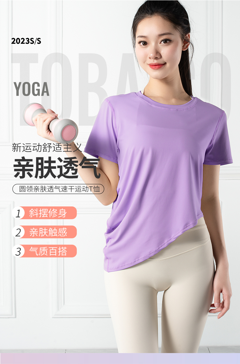 跃牌【禅语梵心系列】薄款圆领亲肤透气瑜伽服T恤F2188(不带胸垫)