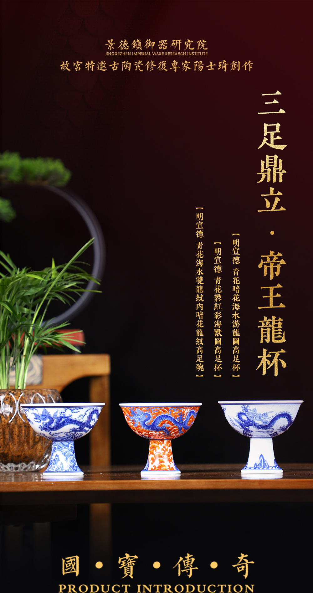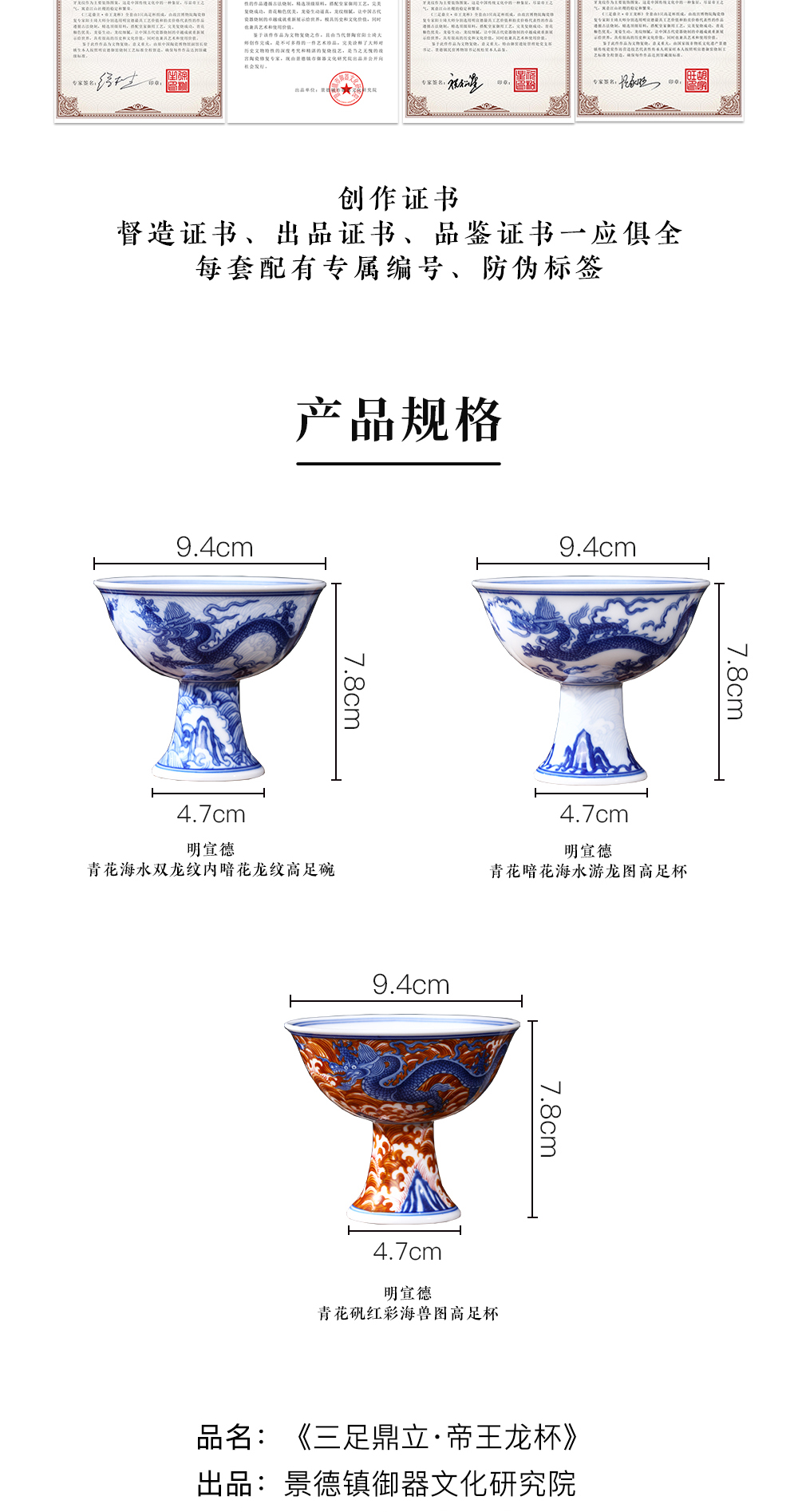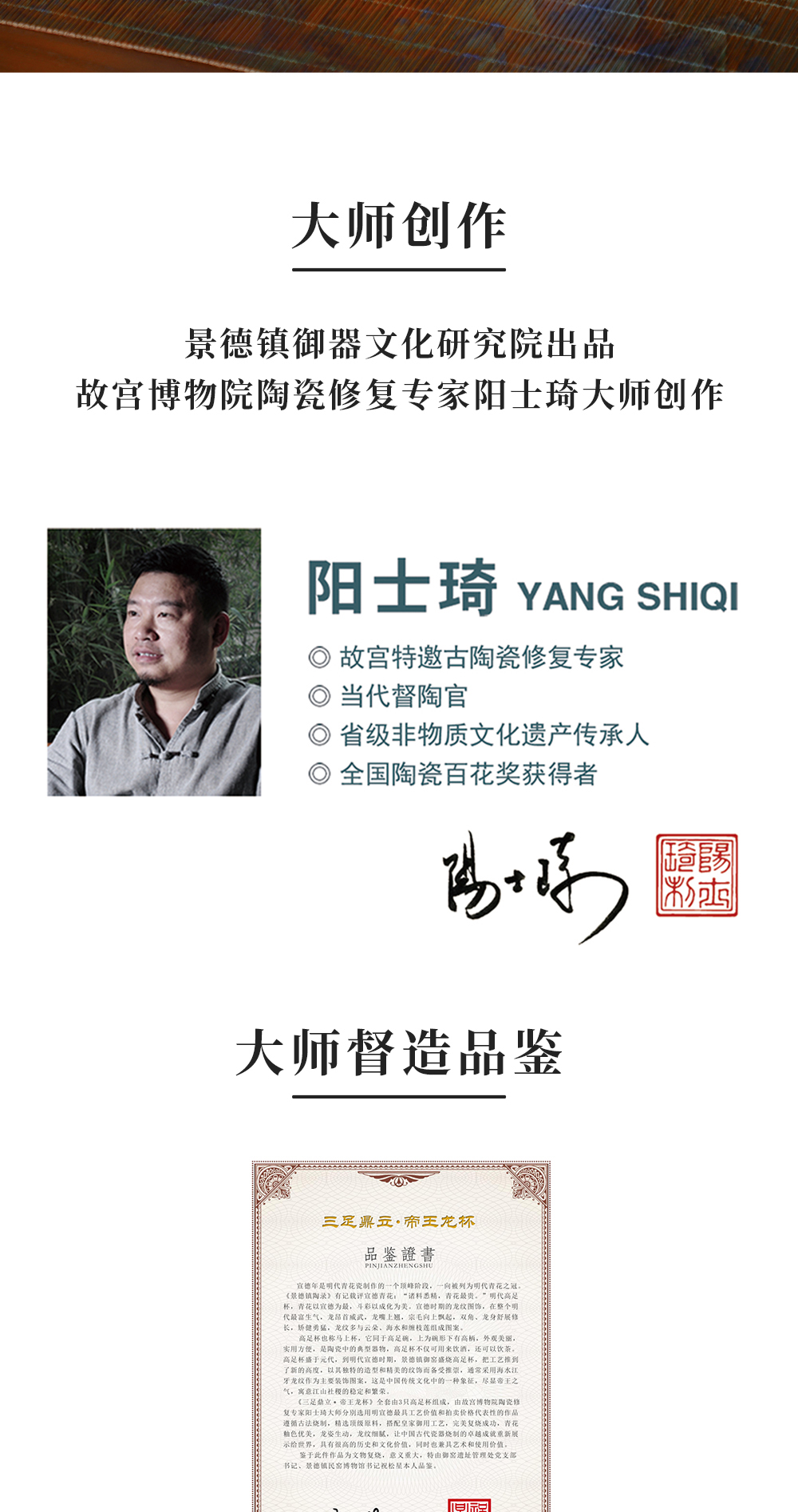 《三足鼎立·帝王龙杯》 中国景德镇御器研究院出品 “当代督陶官”阳士琦监制 宣德青花+矾红