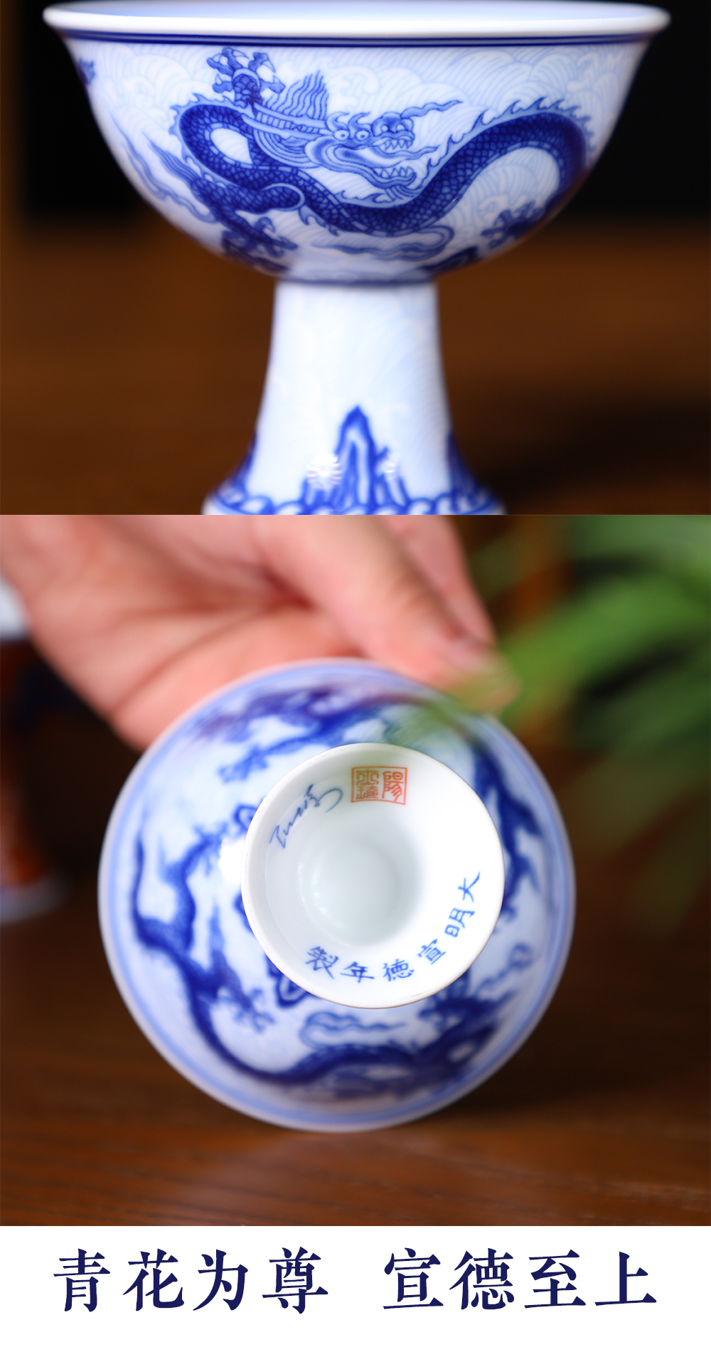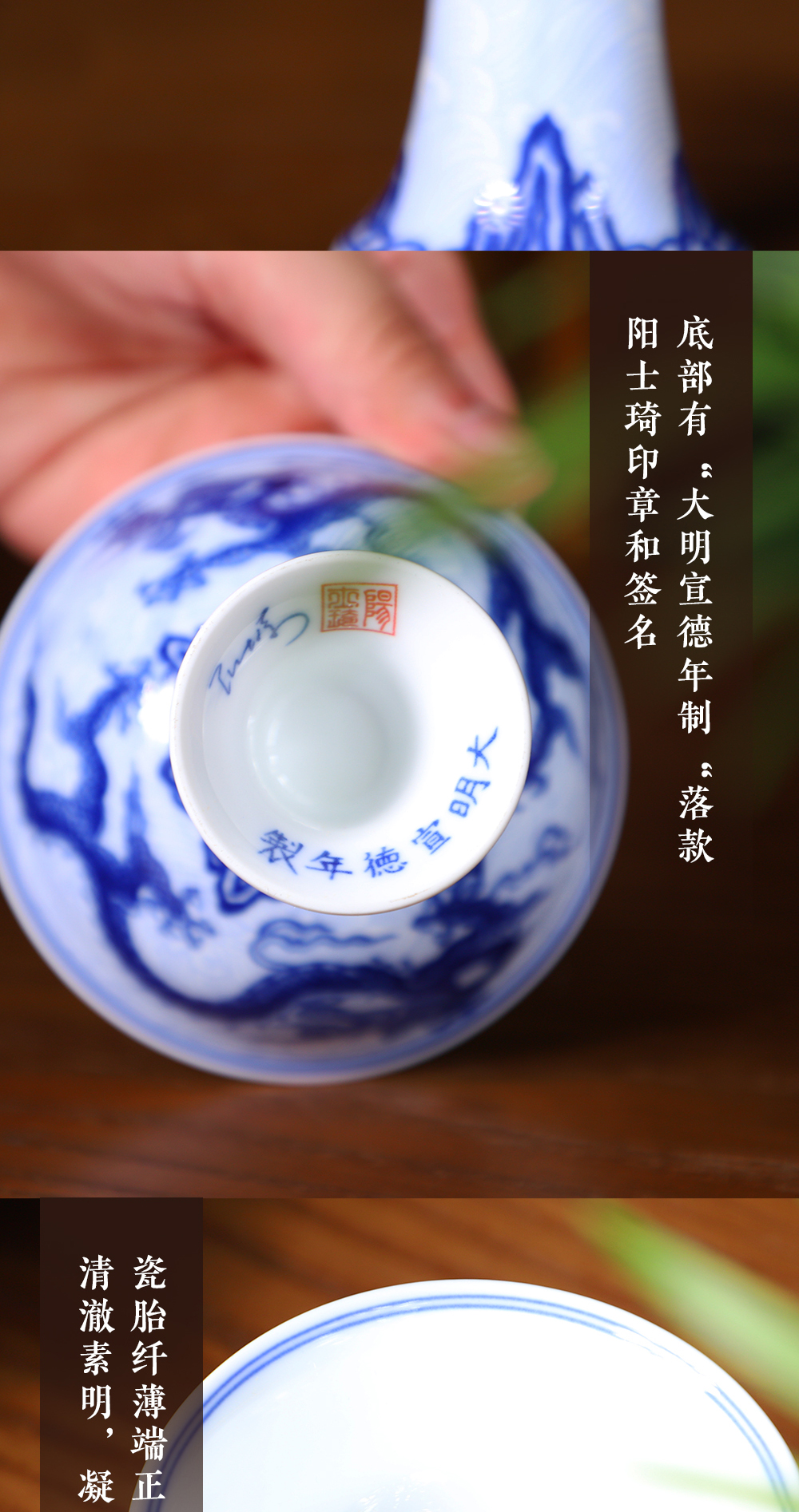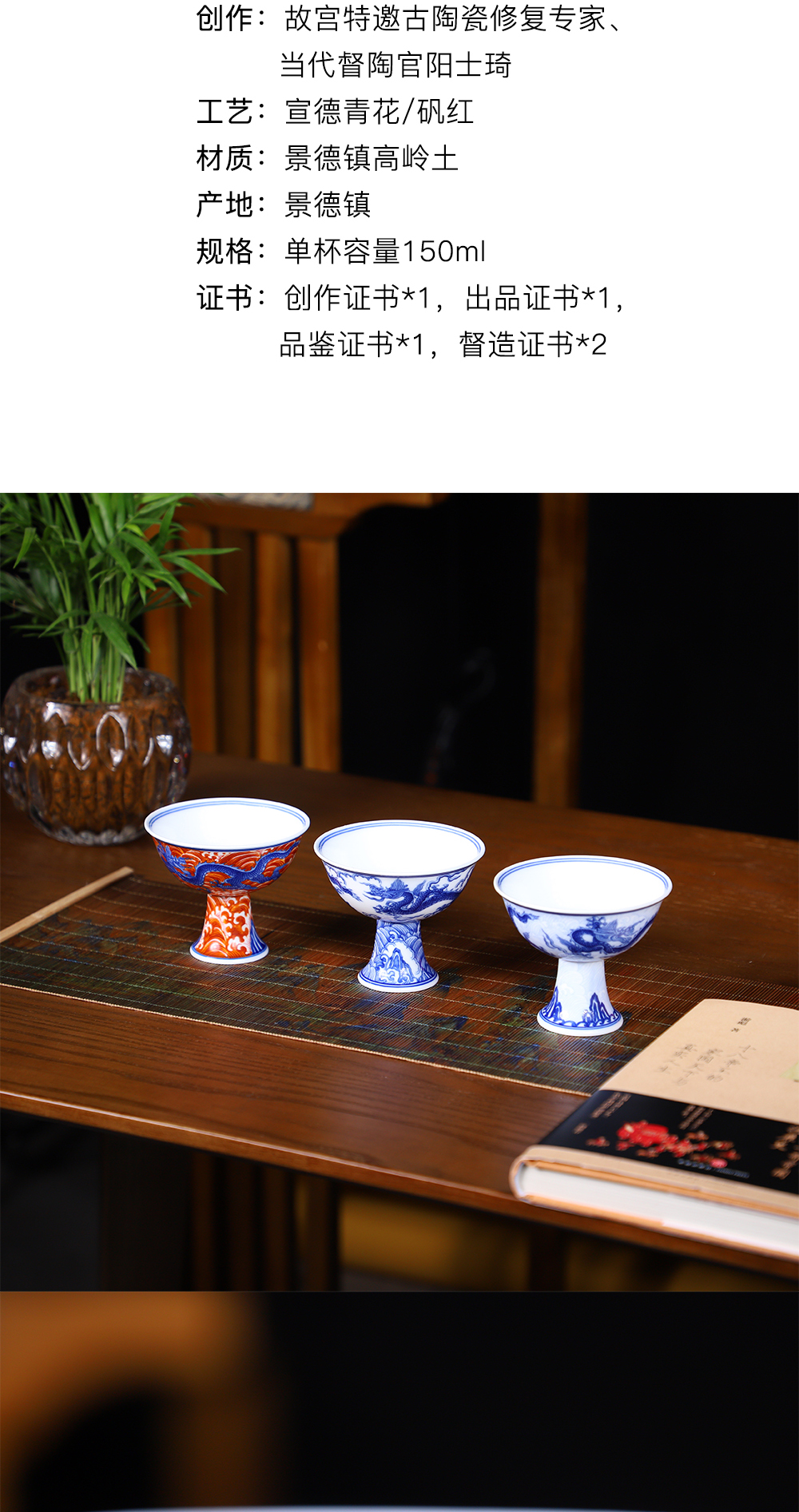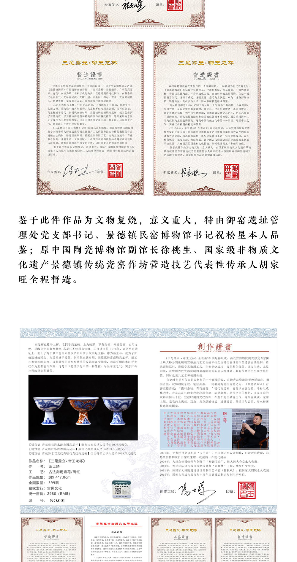 《三足鼎立·帝王龙杯》 中国景德镇御器研究院出品 “当代督陶官”阳士琦监制 宣德青花+矾红