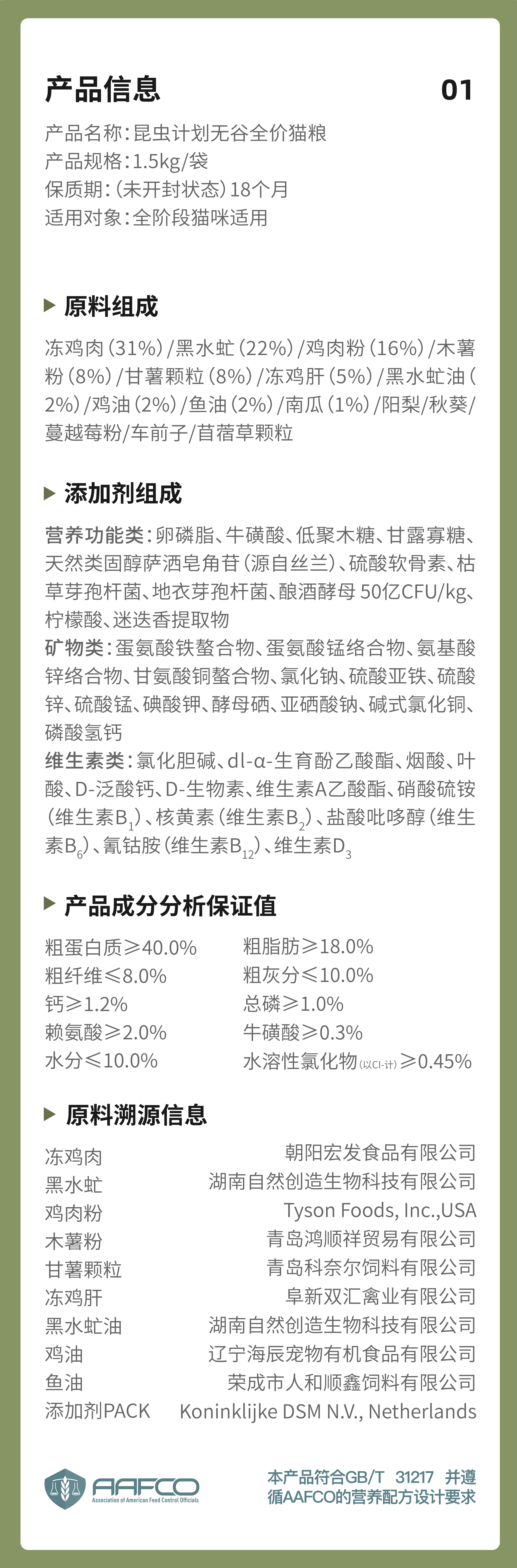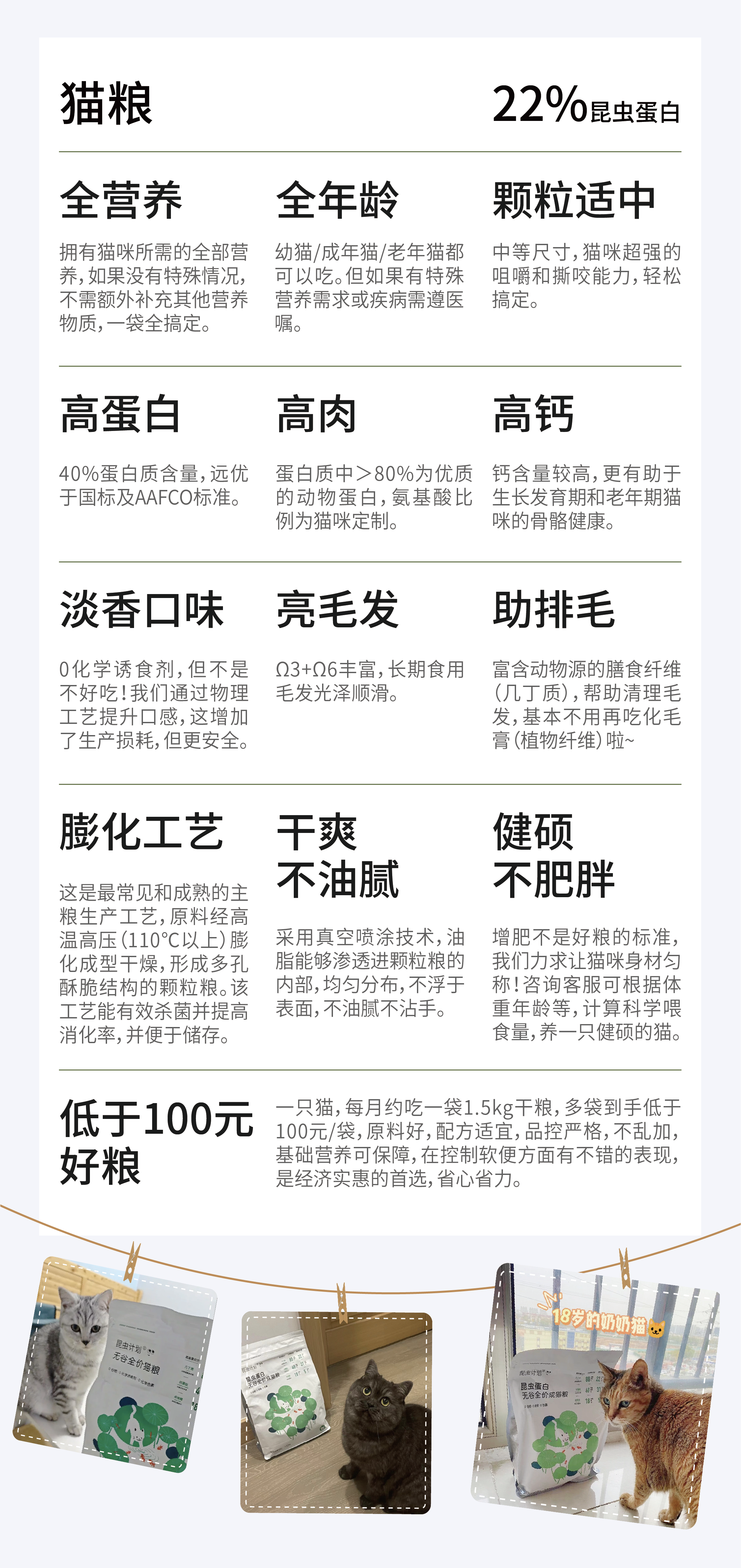 蛋白猫粮 | 双有机认证工厂加工 原料可溯源 | 不添加诱食剂和防腐剂 | 公平贸易 | 基地直发包邮*Insect Program Protein Cat Food
