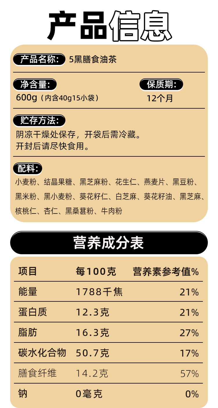 【新品推荐】德富祥膳食油茶清真陕西特产美食5黑(甜)600g*1袋
