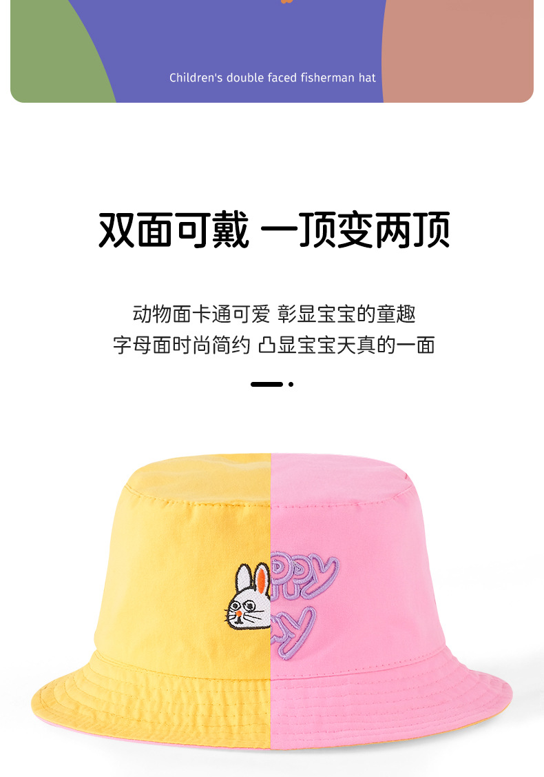 【双面可戴 两种风格随时切换】春夏季儿童渔夫帽子男女宝宝小孩盆帽时尚潮薄款透气遮阳防晒帽