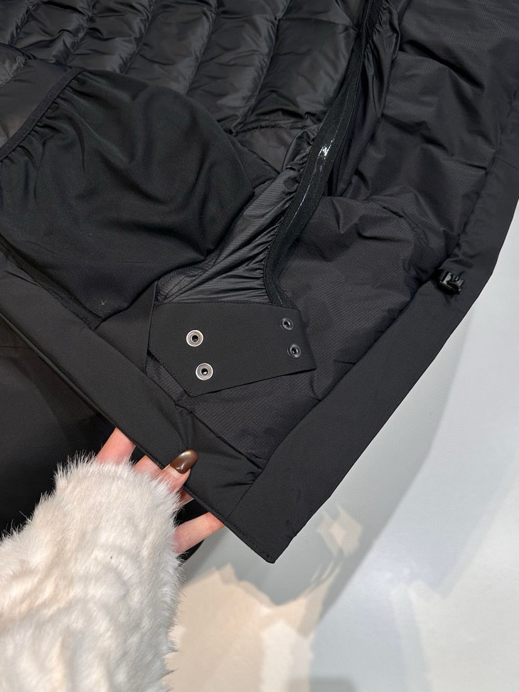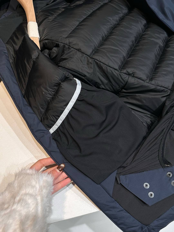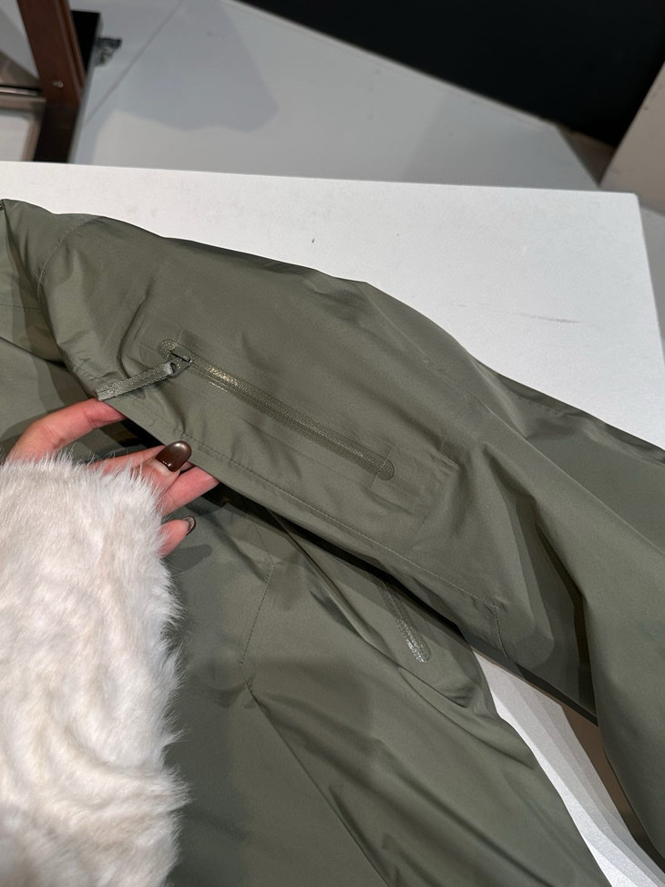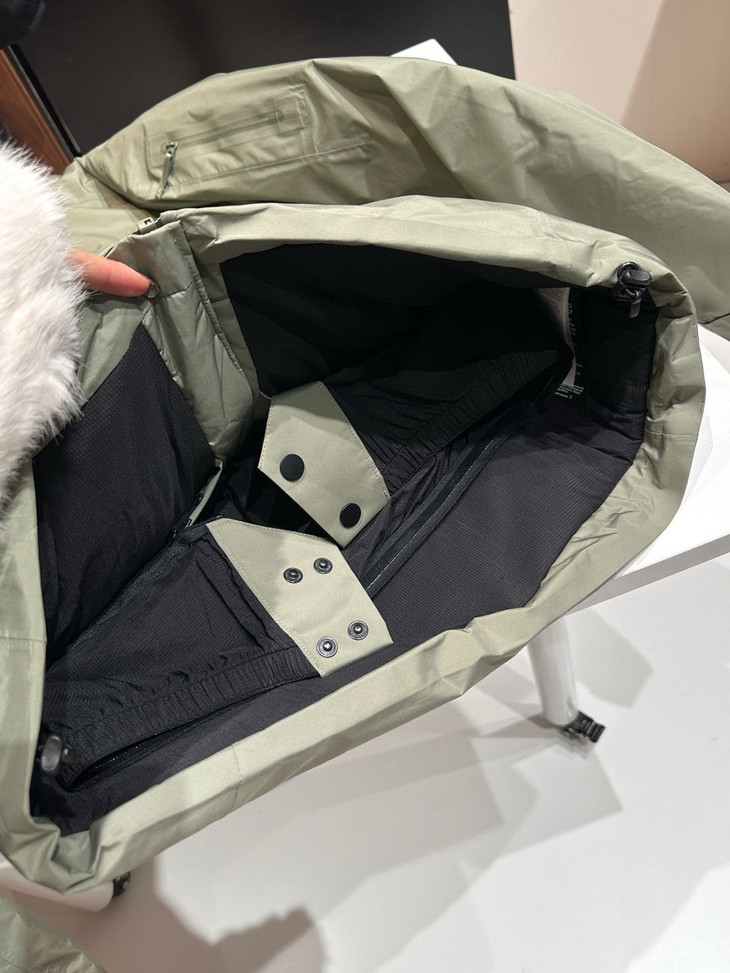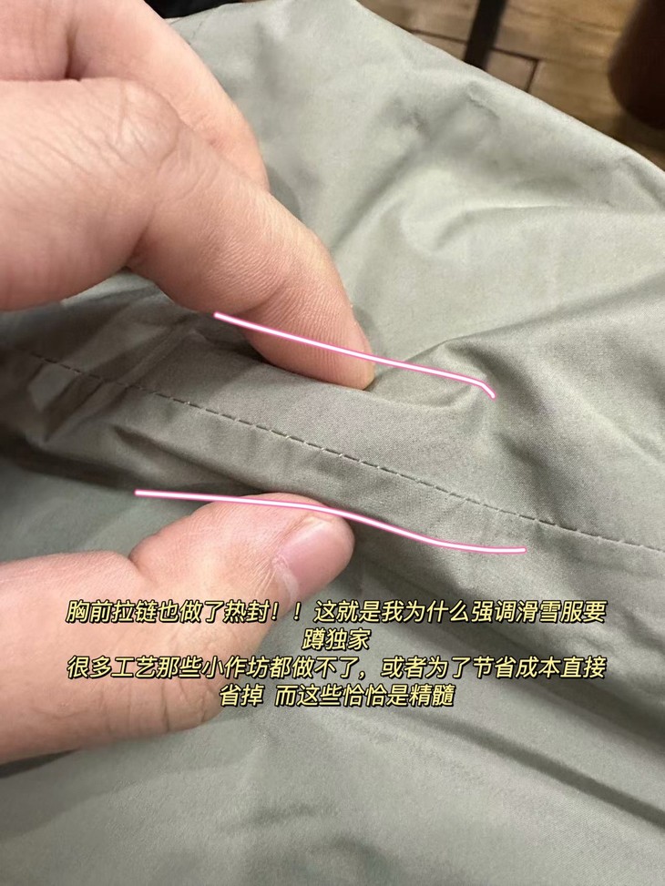 全身都是热封工艺,这个是重点,还有它的大头除了羽绒就是面料 Gore-Tex滑雪服的面料区别于传统冲锋衣的面料 手感密度弹性都不一样!!