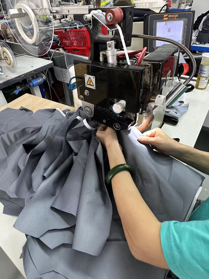 出来的东西真的不一样 只有这种进口机才能对衣服在进行热封时 对于热封的温度 速度上有更高的把握 这样做出来的压胶才会牢固不开胶