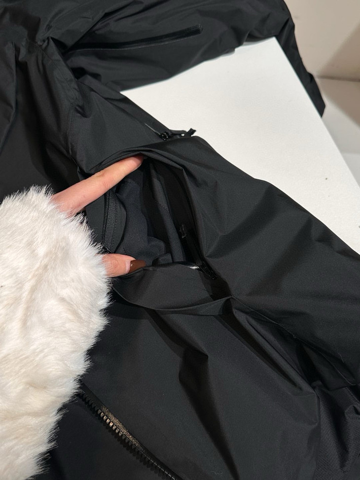 只有独家和原版才会有的胸前热封!!包括口袋内有擦雪镜的布,就问这种细节谁能注意得到?