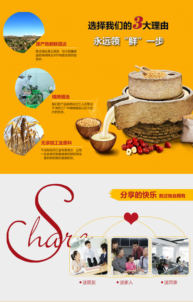 黄土情、真生活 建立苹果、红枣、小米及杂粮种植基地,通过自主专营、电商、超市、批发等渠道宣传推广延安地方产品,努力将延安的特色农产品、绿色食品、民间文化艺术产品推向全国市场