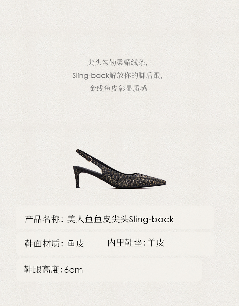 heelz设计师鞋履 | 美人鱼鱼皮尖头Sling-back 6公分