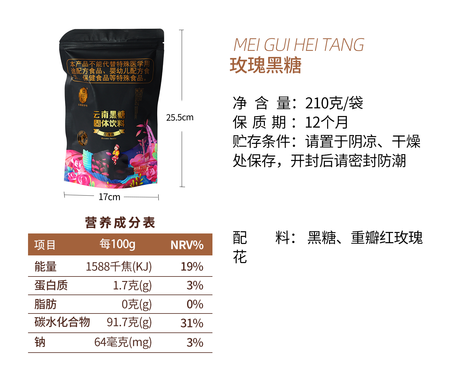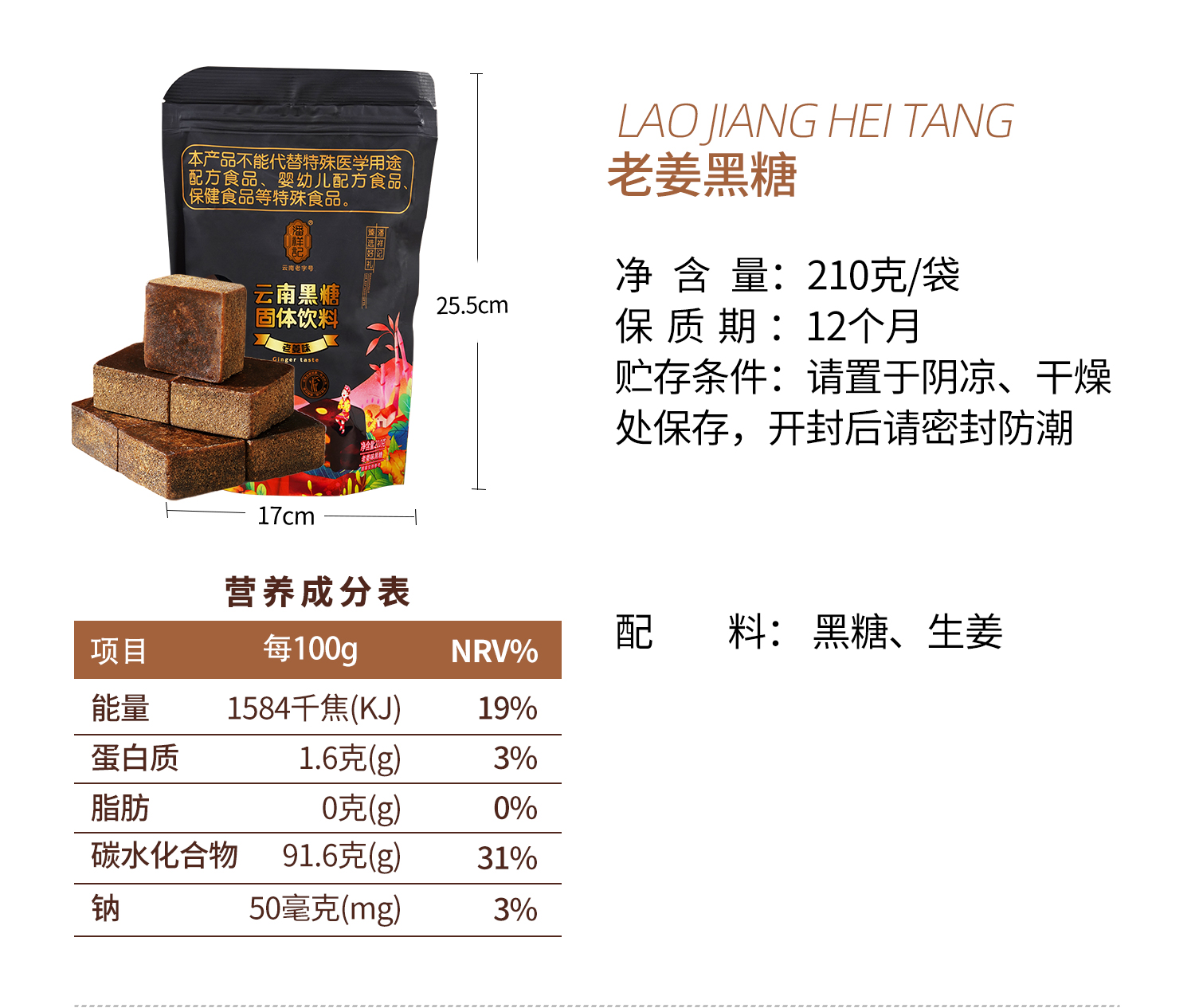 潘祥记云南特产玫瑰老姜黑糖 210g袋装老姜/玫瑰 单个独立小袋装