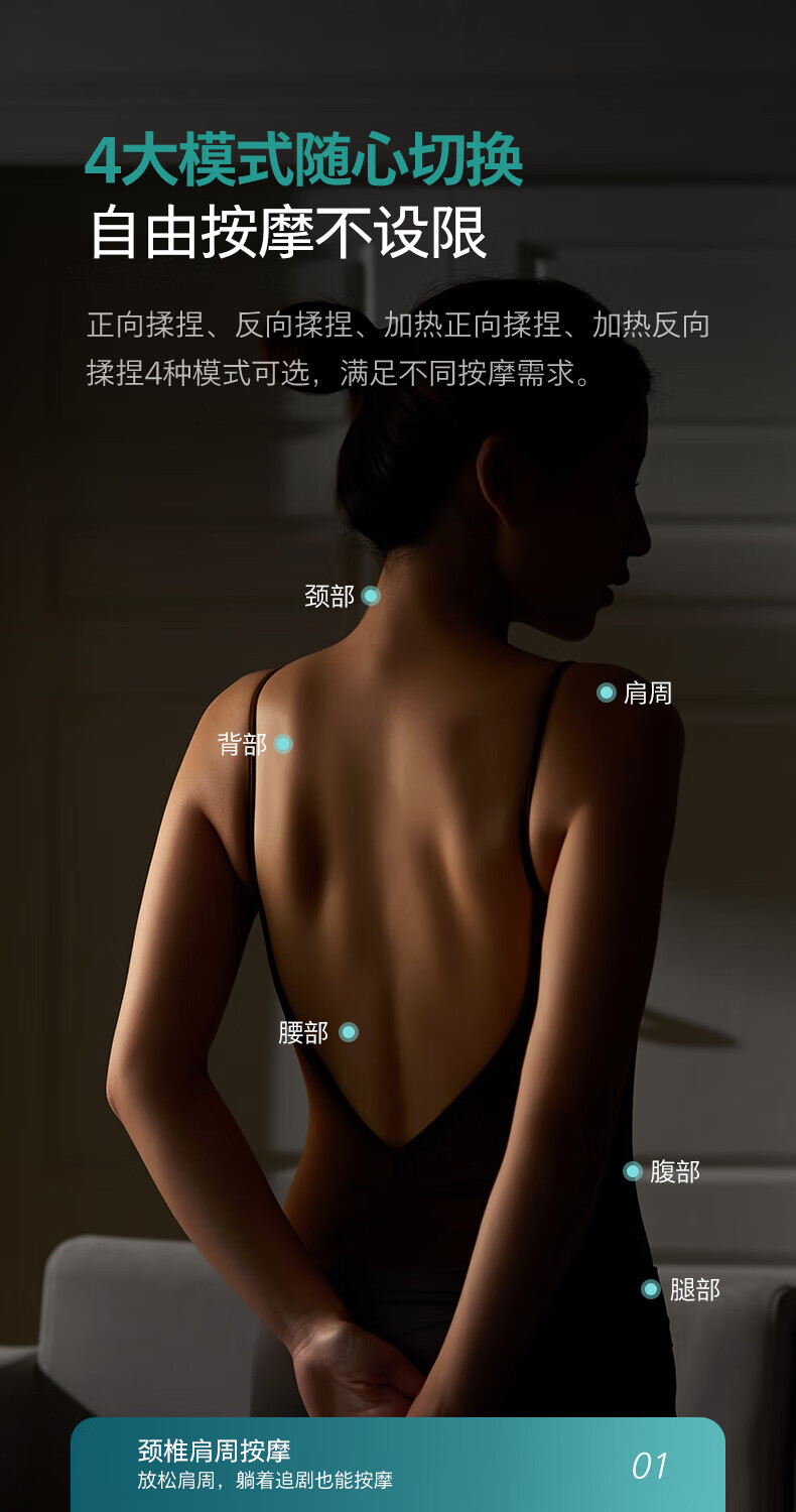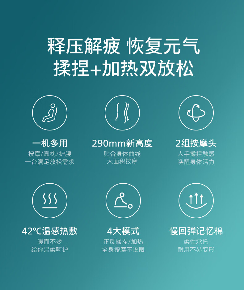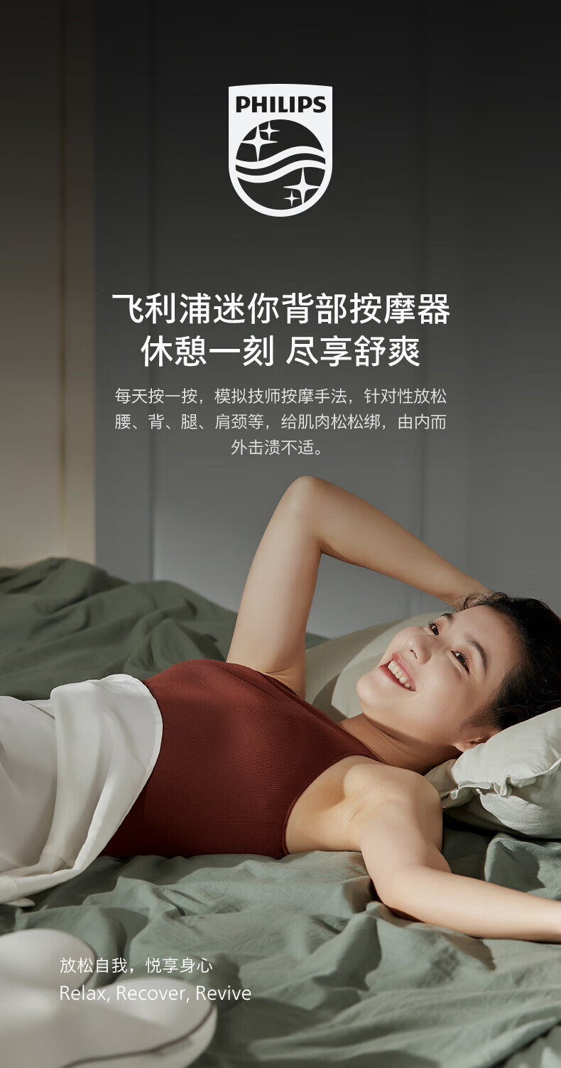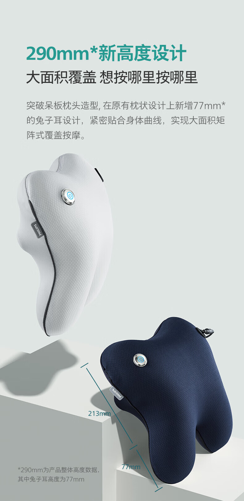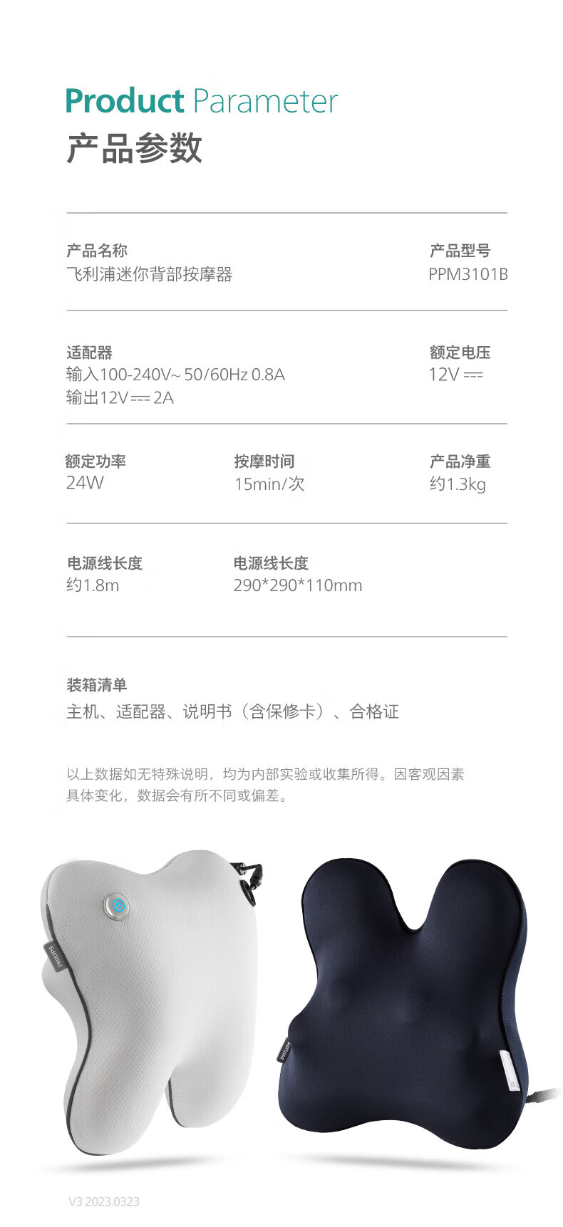 【6F】飞利浦(PHILIPS)腰部按摩器按摩靠垫肩颈按摩器腰背一体按摩抱枕 腰部热敷腿部按摩仪生日礼品礼物送父母 PPM3101B 蓝色