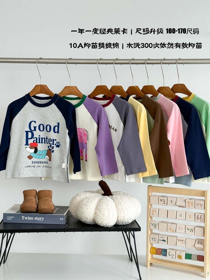 【49.9元/2件起】10A抗菌莱卡棉儿童秋季长袖T恤打底衫男童女童百搭T
