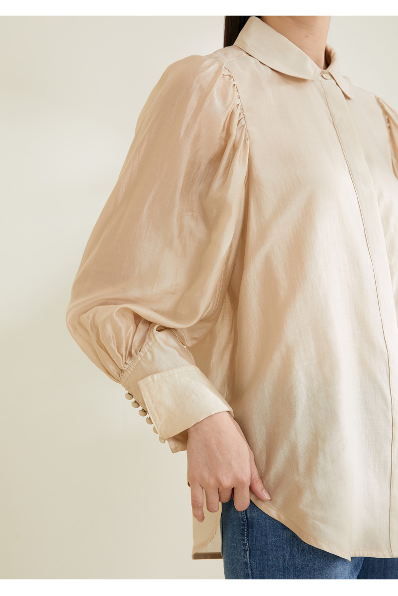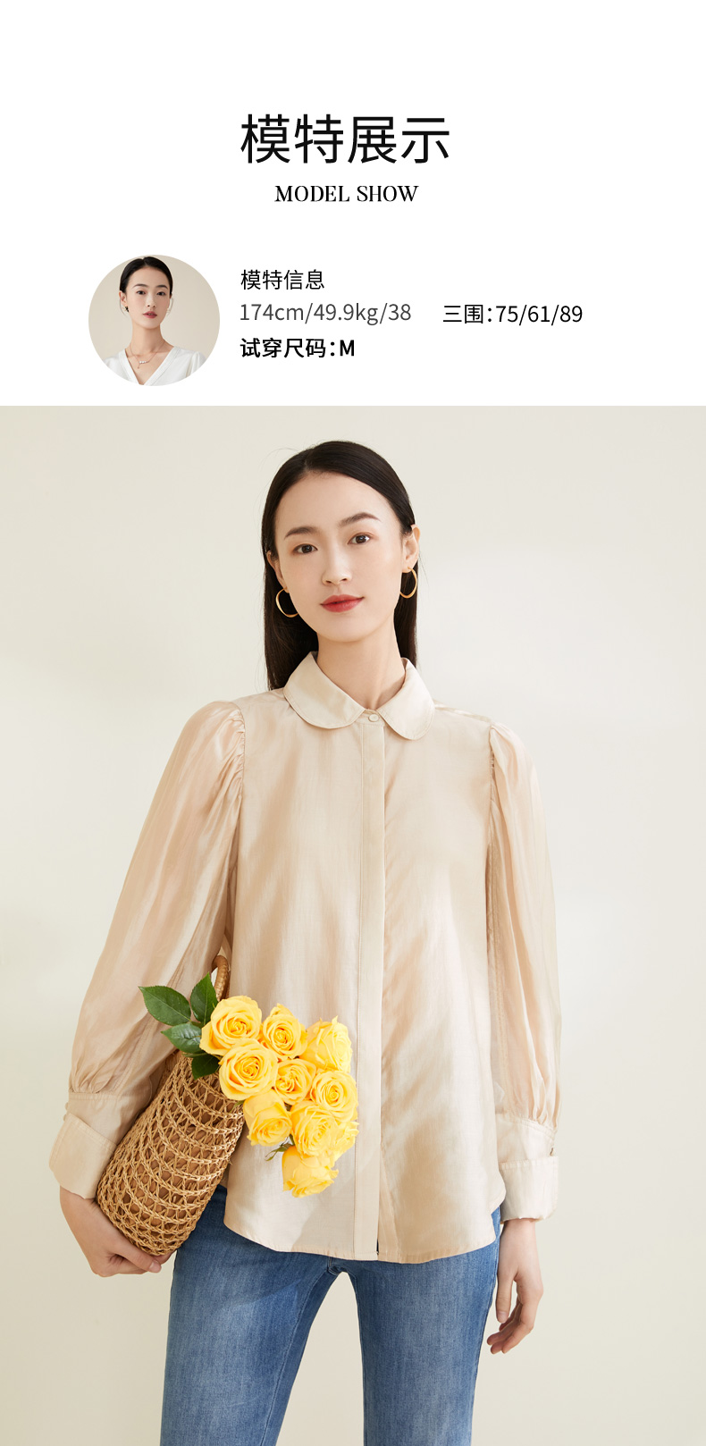 玳莎甜美泡泡袖衬衫宽松衬衣女2022新款设计感小众圆角领上衣 CA31315