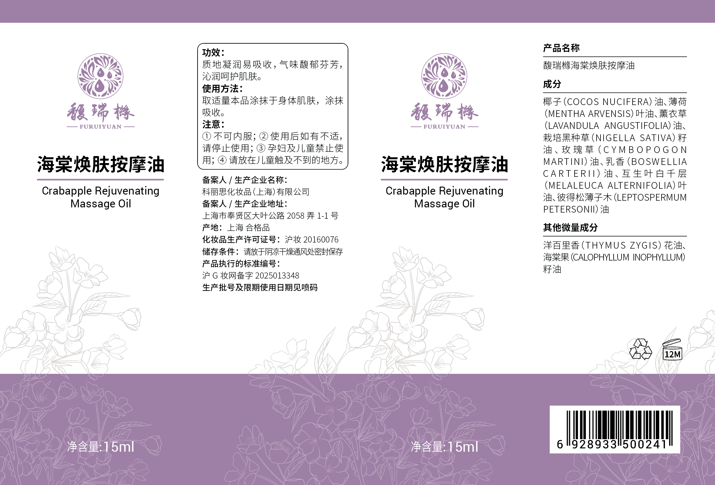 馥瑞橼海棠焕肤按摩油 植愈力量 肌活新生