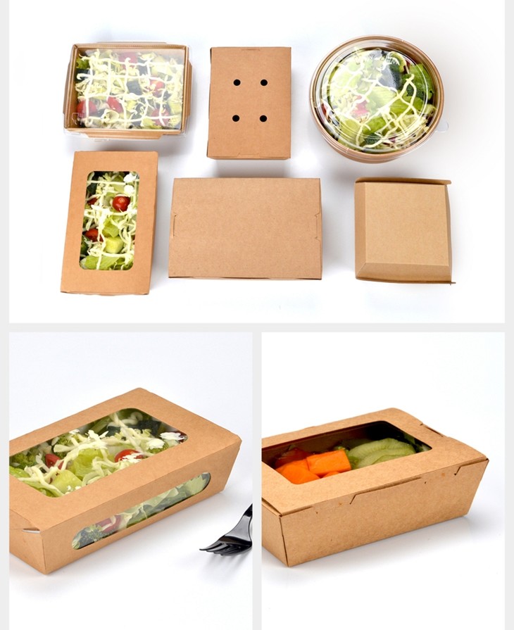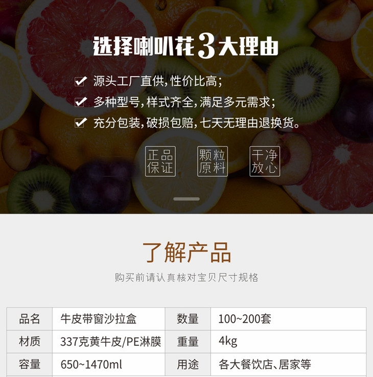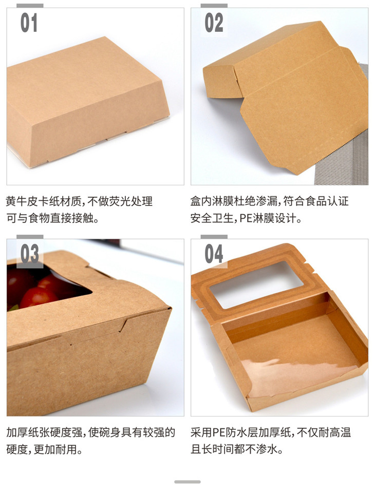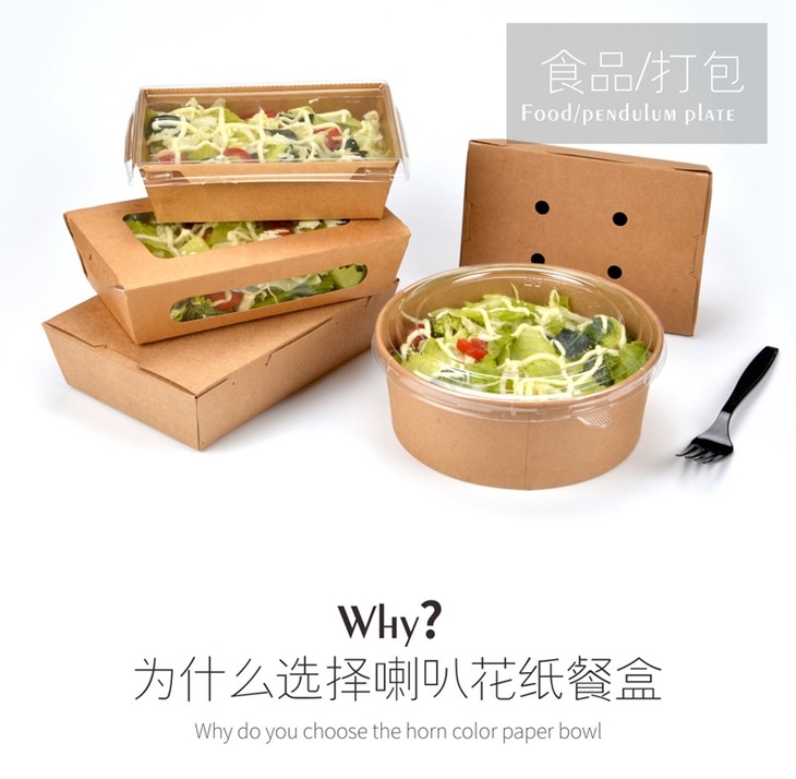 喇叭花沙拉盒一次性牛皮防水纸餐盒水果沙拉便当外卖打包盒快餐盒