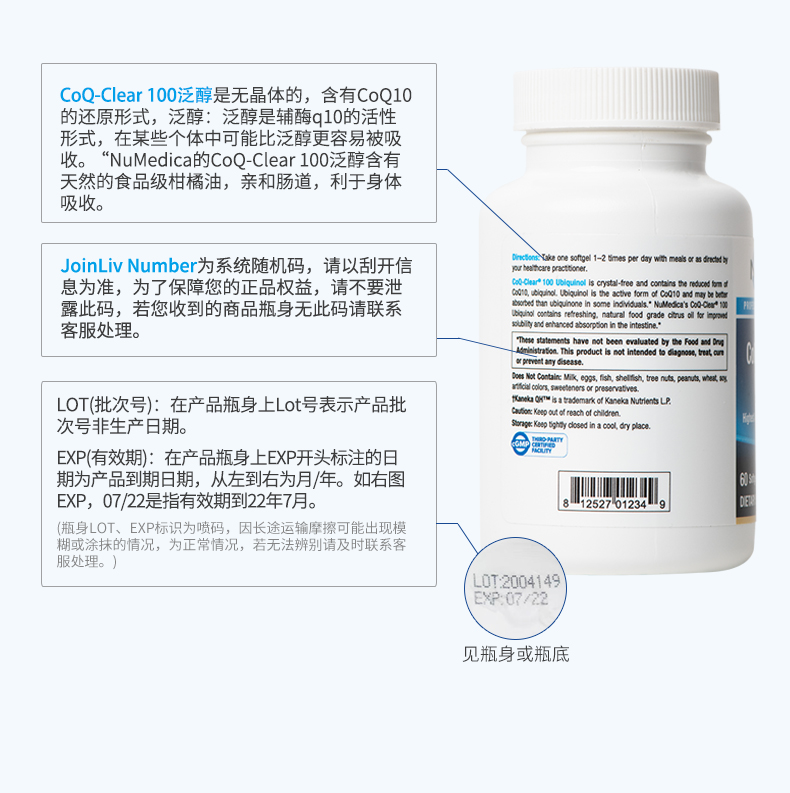 26年10月到期 还原型辅酶Q10-泛醇 100mg JoinLiv觉厉