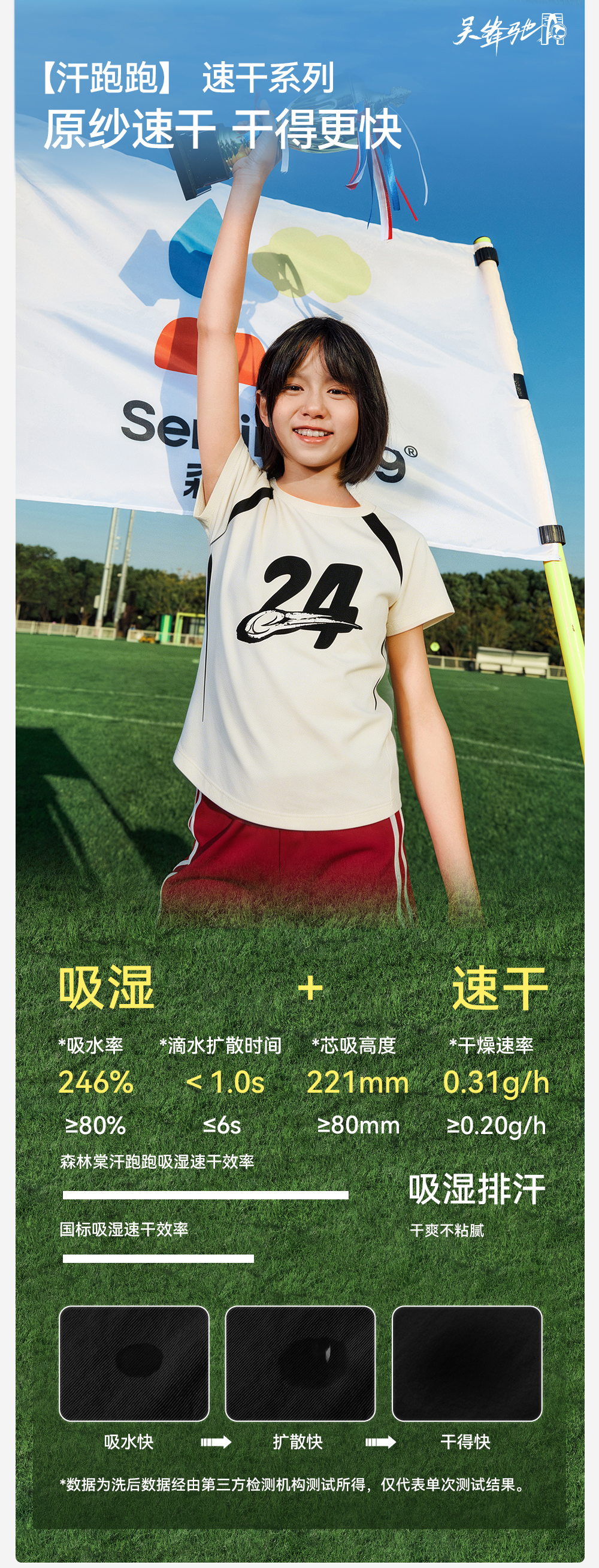 【女童棉感速干短袖】森林棠26夏款汗跑跑女孩24号球衣运动T恤40162474