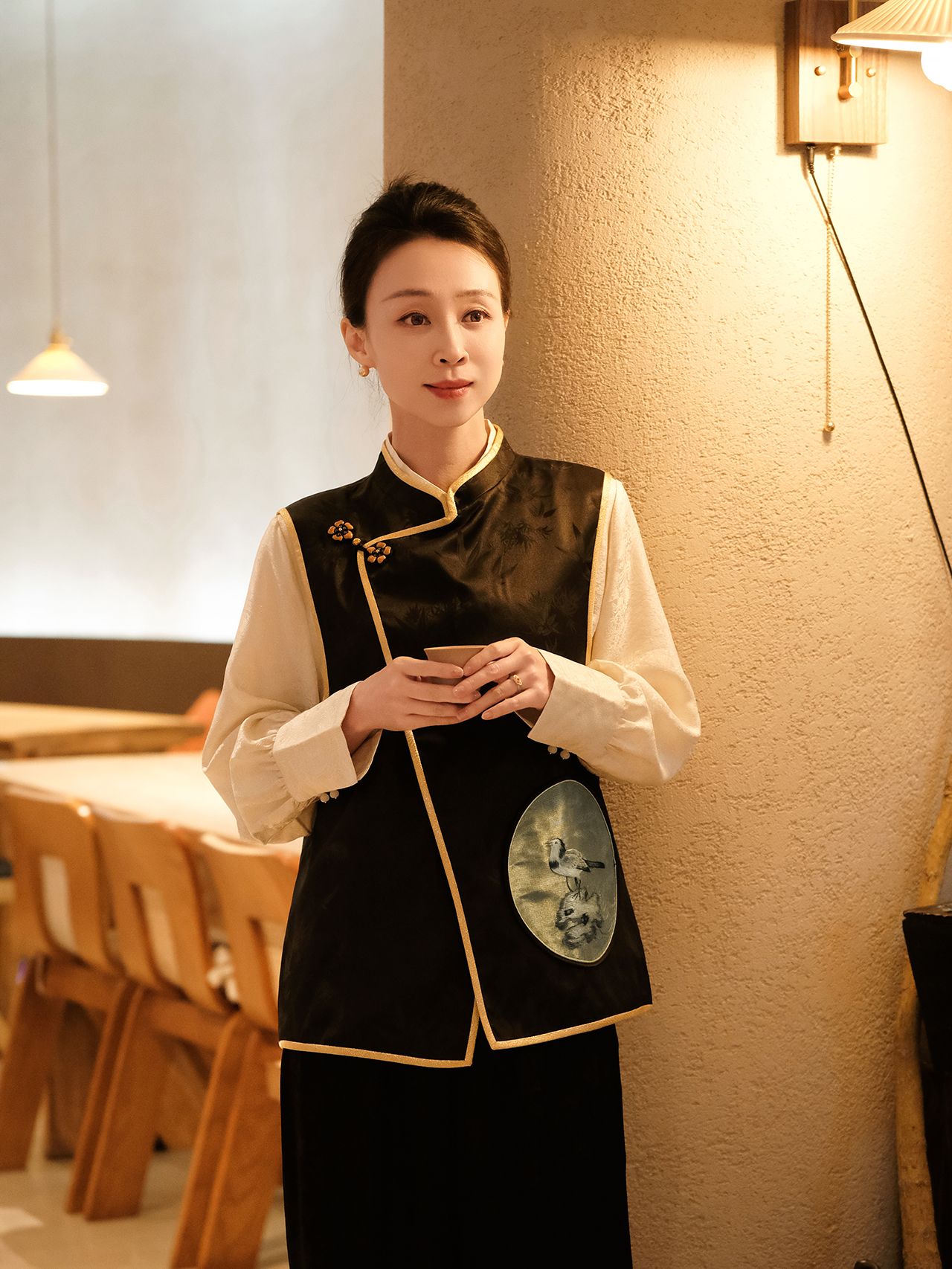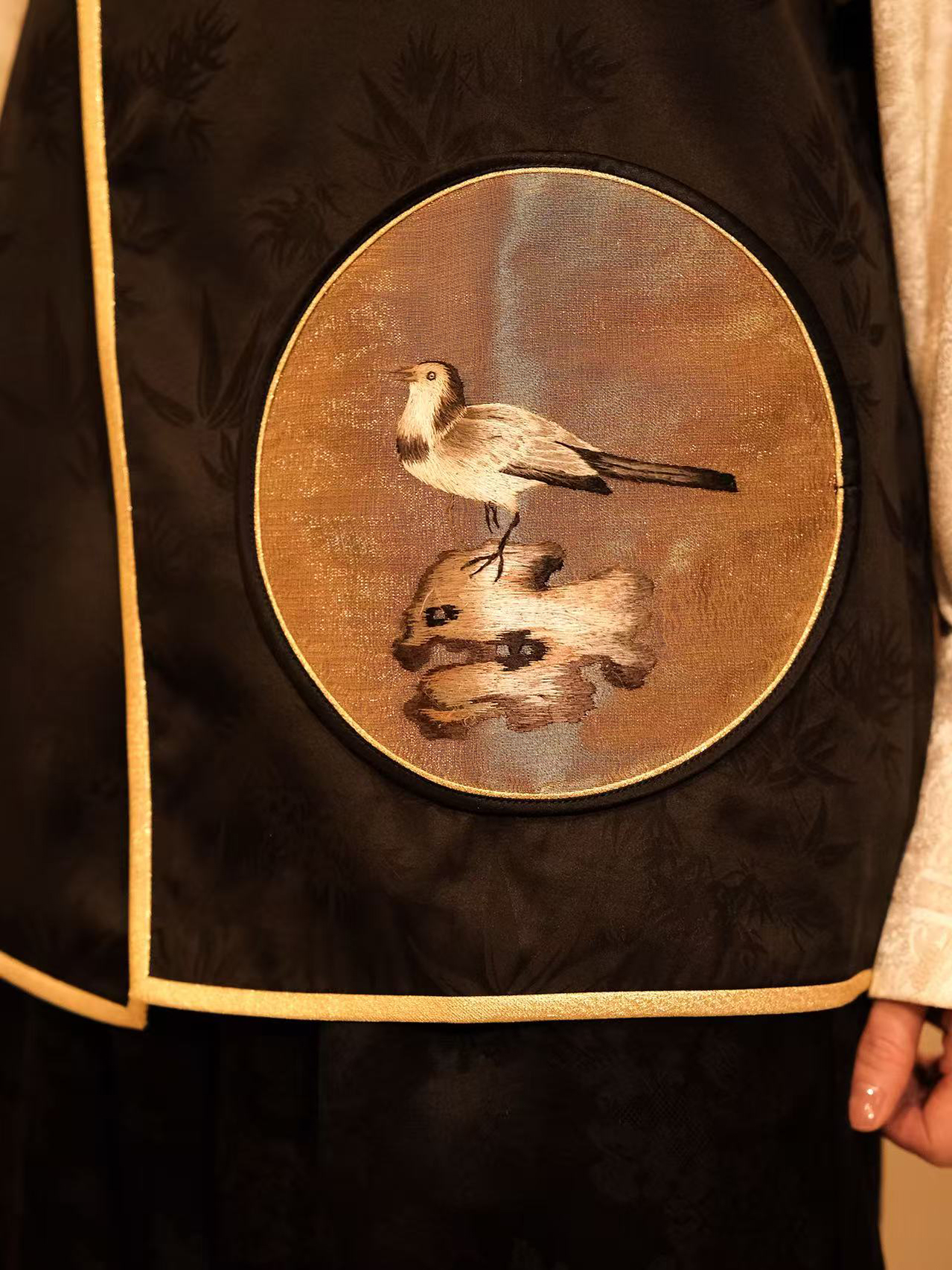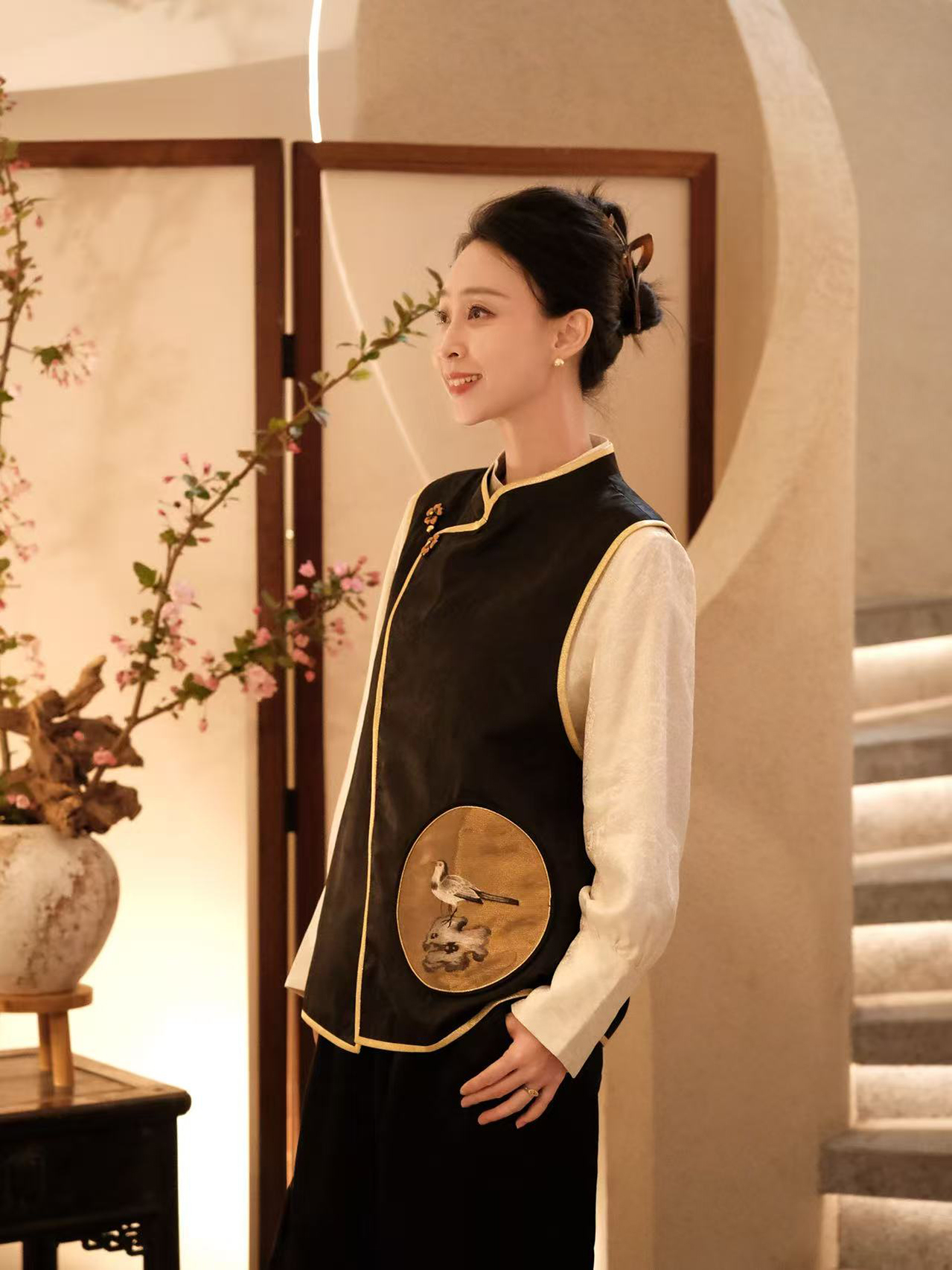 盛唐牡丹盛奢系列 | 文竹真丝香云纱手绣斜襟马甲