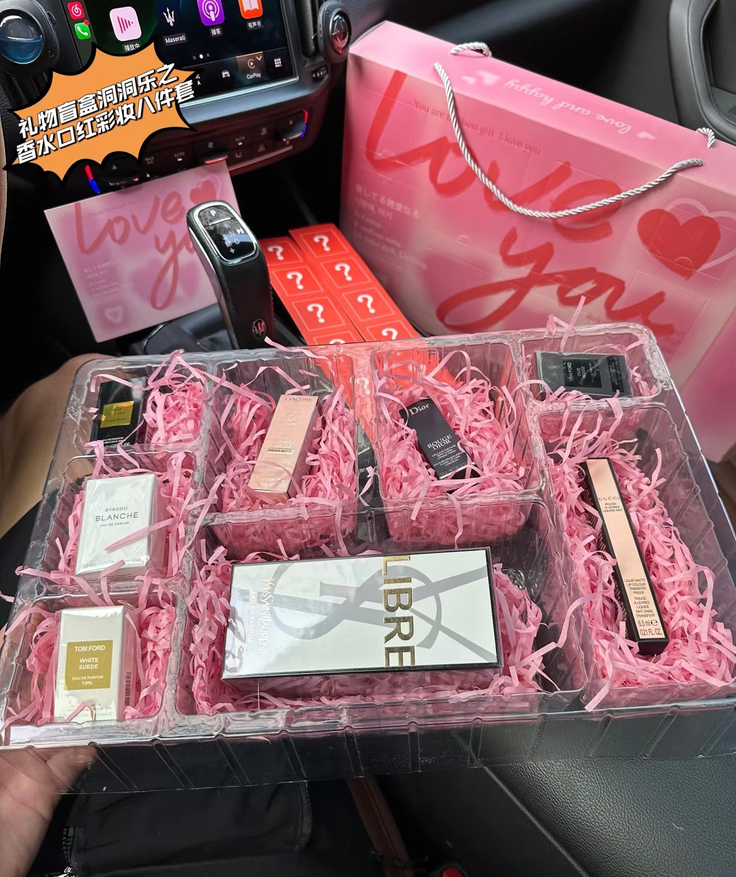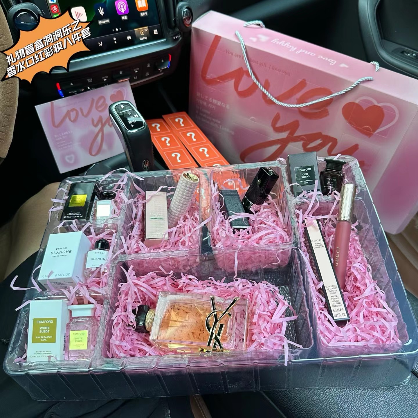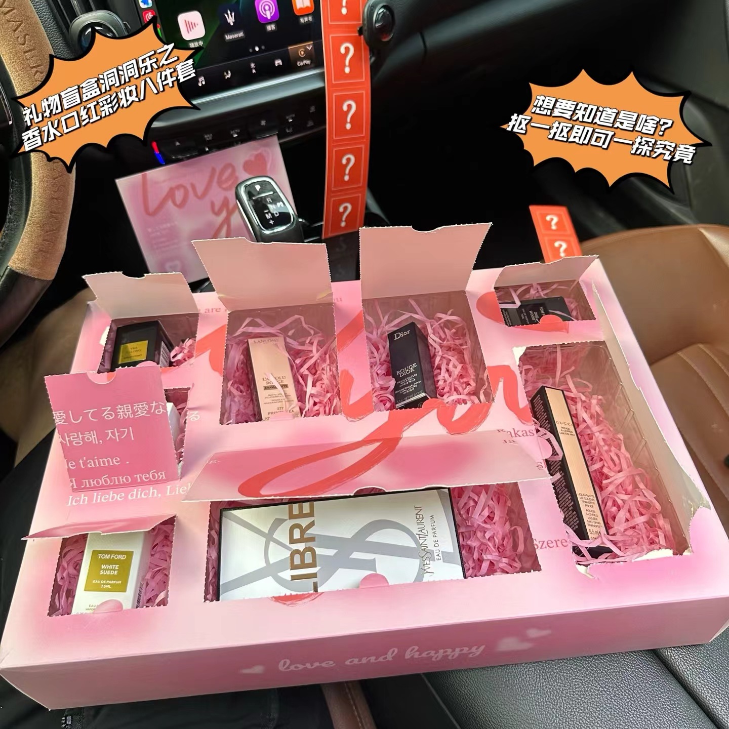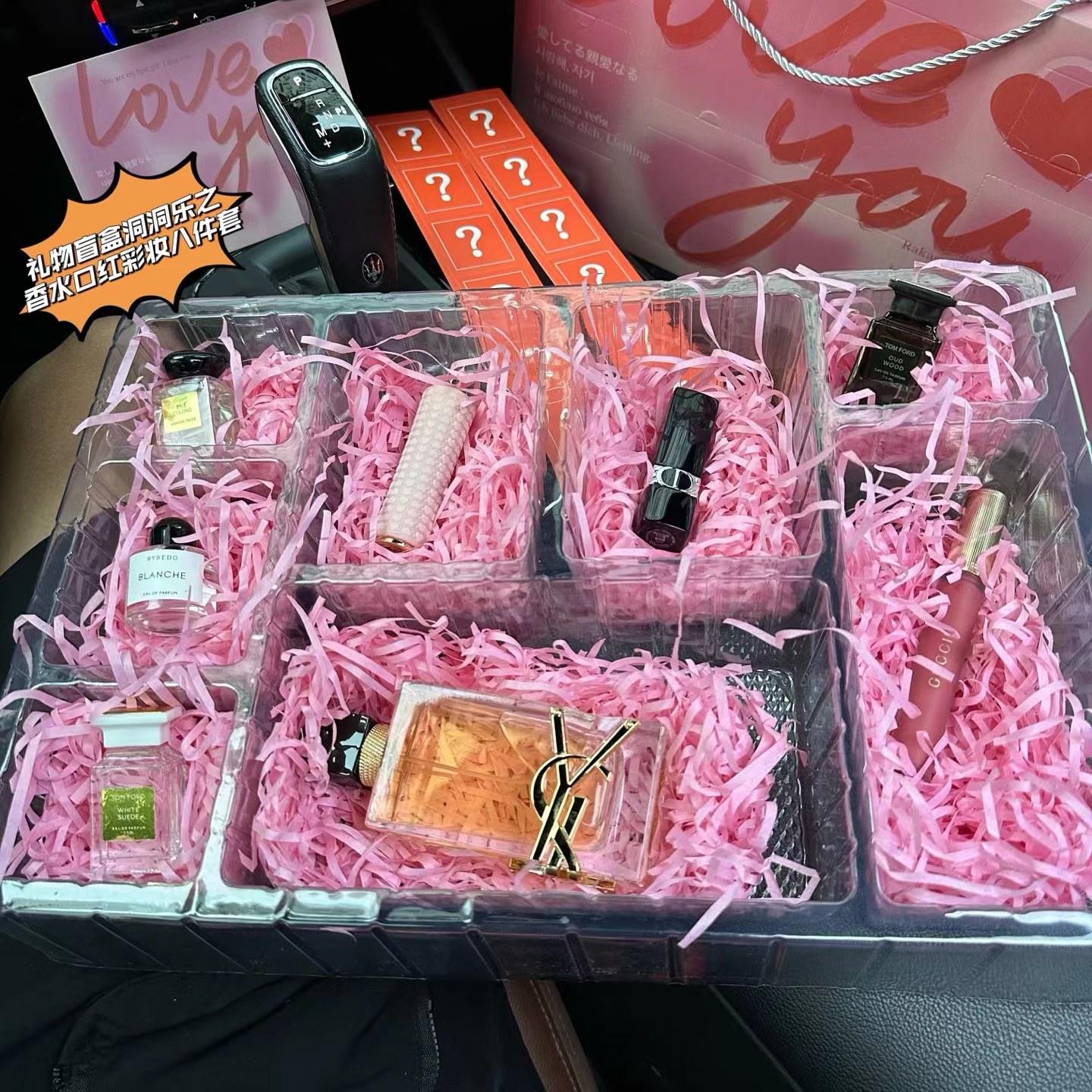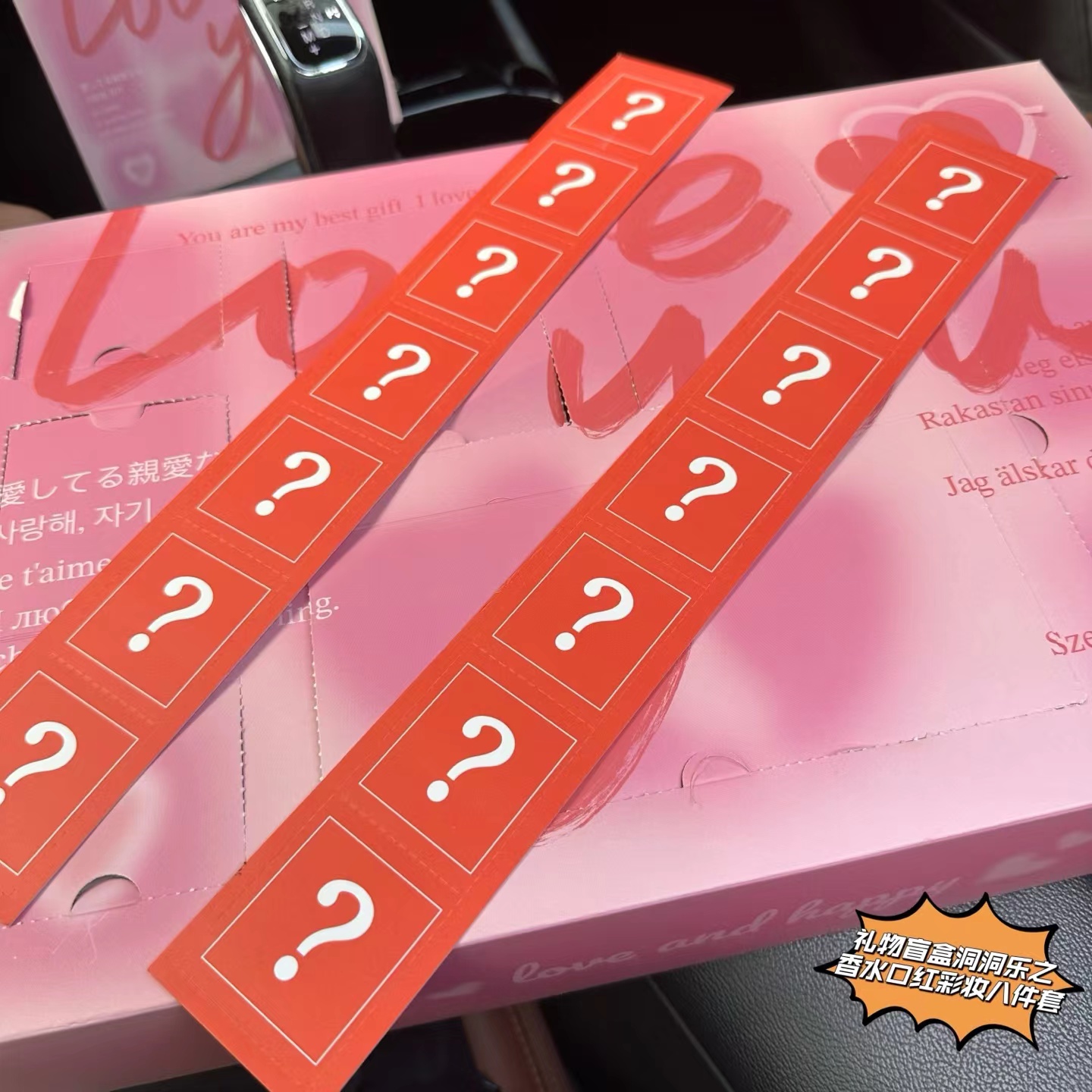 【礼物盲盒洞洞乐之香水口红彩妆八件套】盲盒+洞洞乐=Double快乐,戳戳乐!未知礼物大冒险,洞洞藏宝,一戳知礼!粉粉的洞洞板,藏着八份精心准备的礼物盲盒!一盒八样,玉龙茶香水7.5ML+口红277#爱心口红正装+999#正装口红+乌木香水7.5ML+白色浪漫10ML+白麝香香水7.5ML+自由之水香水100ML+唇釉208#6.5ML!每一格小洞背后,都藏着未知的奇妙礼物!指尖轻戳,快乐揭晓——可能是香香的香水,或是意想不到的口红唇釉,太幸福啦!每一次戳破薄膜的“噗嗤”声,都伴随着尖叫与欢笑!jue对是心仪的小物惊喜喔,瞬间点燃气氛,拉近彼此距离!一盒八种惊喜!礼物盲盒洞洞乐,戳出超值快乐,从口红到香水,她的惊喜都藏在这份盲盒里!
