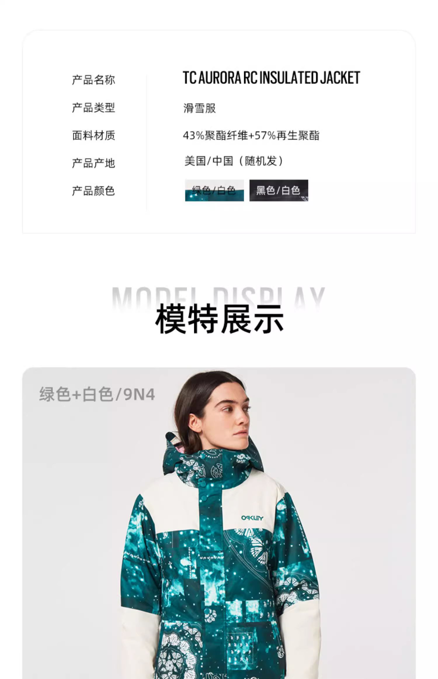 【断码五折】Oakley欧克利秋冬雪服时尚户外装备保暖滑雪服女 FOA500278