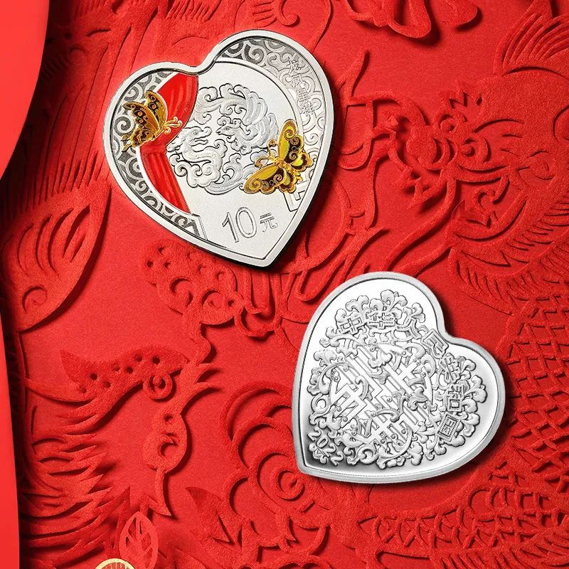 30克心形银质纪念币为精制币,含纯银30克,外接正方形边长40毫米,面额10元,成色99.9%,最大发行量50000枚。