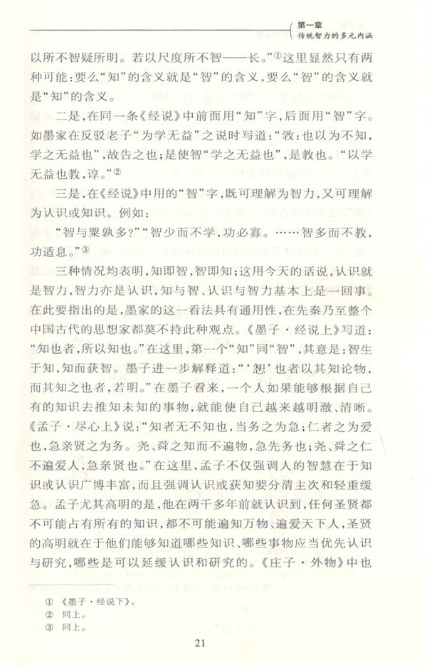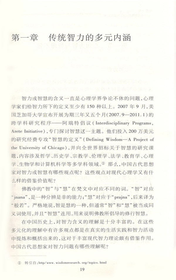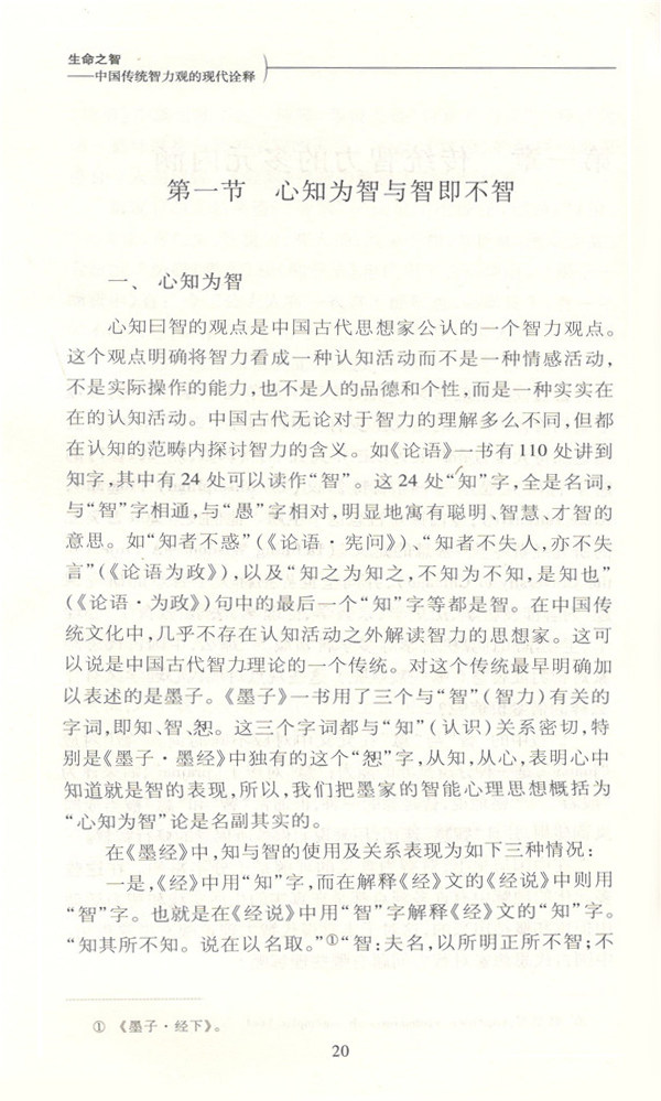 导论:传统中国智慧与中华文明一、什么是中华文明二、文明与文化的关系三、中华文明的形成四、中华文明与传统智力五、智力与文明的相互塑造六、中华文化中的智力与智慧第一章传统智力的多元内涵第一节 心知为智与智即不智一、心知为智二、智即不智第二节 智力知常说与知识说一、智力知常说二、智力知识说第三节 智力条理说与趋利避害说一、智力条理说二、智力趋利避害说第四节 智即不蔽与辨别是非说一、智即不蔽说二、辨别是非说第五节 知人即智第六节 智力心力说与功效说一、智力心力说二、智力功效说第七节 智力觉悟说第八节 佛教中的智力观第九节 智力聪明说与智力创造说一、智力聪明说二、智力创造说第二章中国传统智力观的成因第一节 气禀决定论第二节 材质决定论第三节 灵秀来源于五行之秀第四节 智力产生于困境第五节 取天论与竭天论第三章智力的生理机制第四章传统智力观的类型第五章衡量智力的标准第六章智能的差异第七章智力与非智力第八章智力与想象第九章传统智力测验的特色与价值第十章学习在智力开发中的价值后记