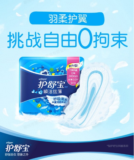护舒宝卫生巾网面240mm5+1片/包干爽网面女瞬洁丝薄日用夜用透气姨妈巾卫生棉姨妈巾